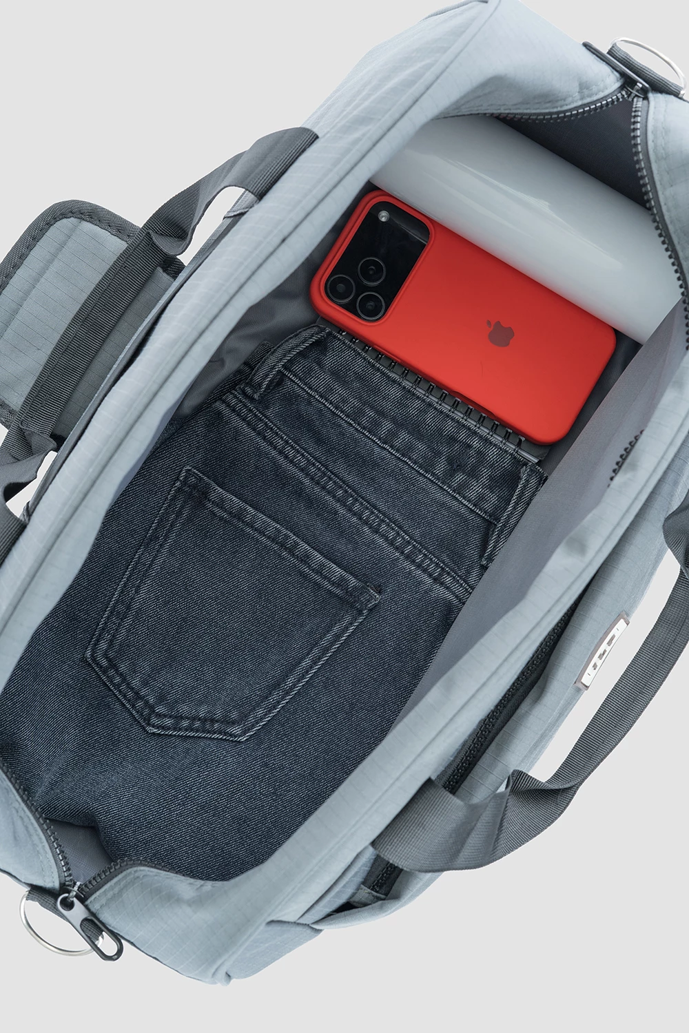 Серая дорожная сумка с вместительным отделением и удобным внутренним карманом на молнии. Внешний карман также оснащен молнией для доступности нужных предметов. Дополняет образ прочный текстильный ремень. Надежный спутник в путешествиях и поездках.Размер