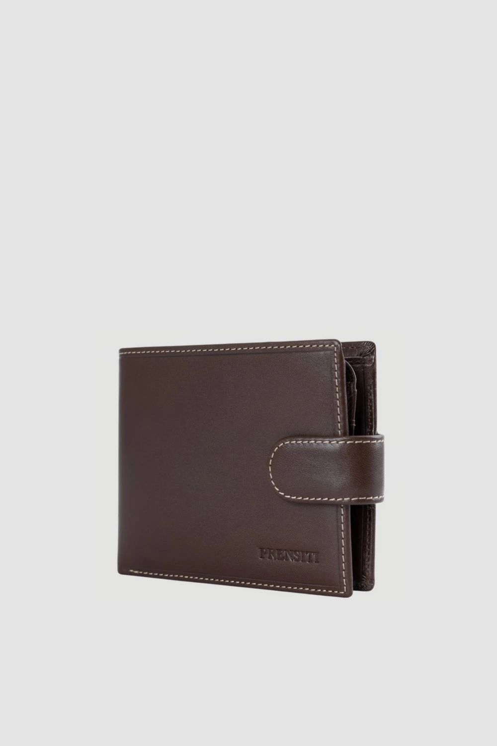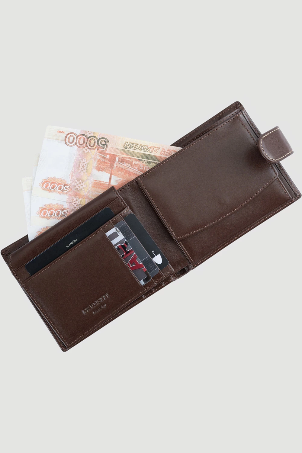 Коричневый мужской кошелек с двумя отделениями для купюр, потайным карманом на молнии, отделом для карт и удобной монетницей на кнопке. Стильно, функционально и надежно.