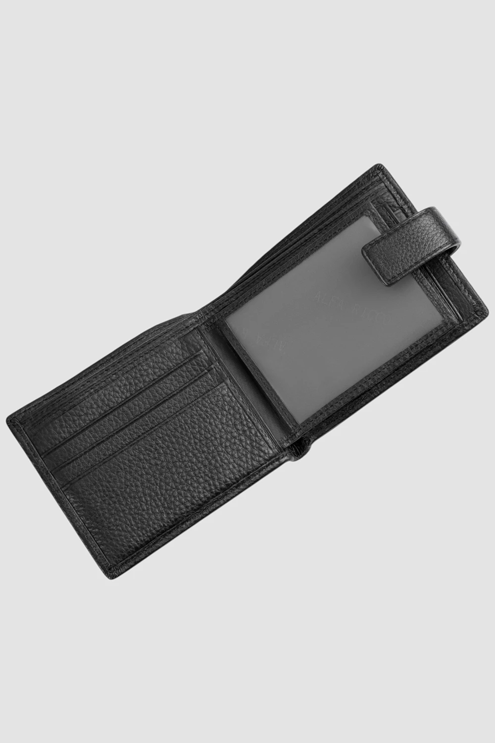 Бифолд ALFA RICCO закрывается на кнопку, имеет стандартные отделы для карт и купюр, а еще располагает местом для монет. В него также поместятся пропуск, визитка и фото семьи. Это универсальная покупка на все случаи жизни!