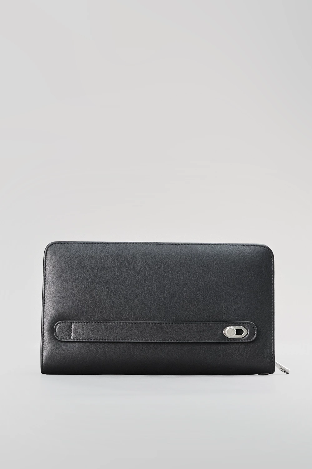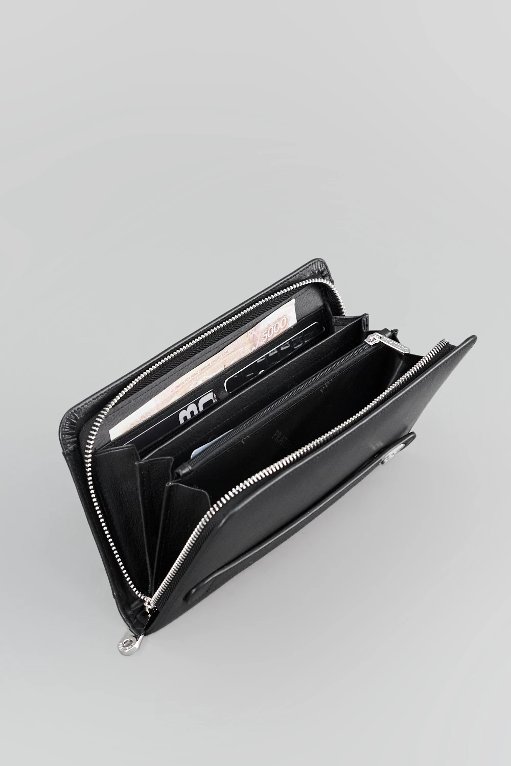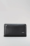 Мужской клатч черного цвета из натуральной кожи с двумя отделами на молниях. Один отдел оснащен отделением для карт, второй дополнен дополнительным карманом на молнии. Аксессуар сочетает стиль, качество и функциональность, подчеркивая индивидуальность владельца.