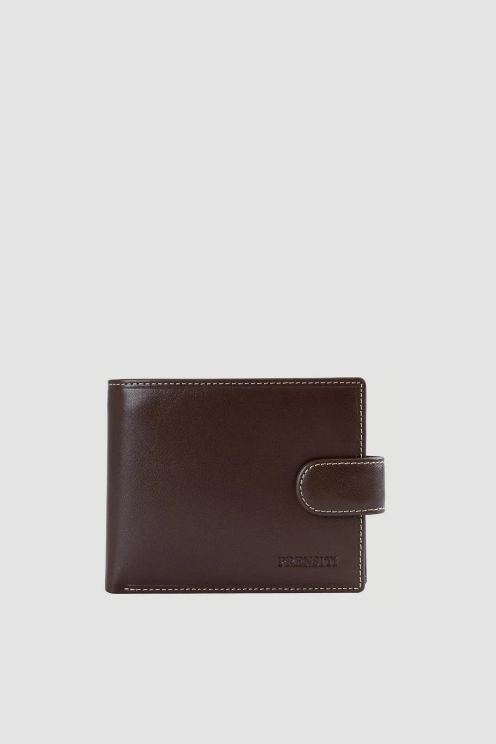 Коричневый мужской кошелек с двумя просторными отделениями для купюр, скрытого потайного кармана на молнии и несколькими отсеками для банковских карт. Элегантный дизайн и функциональность делают этот аксессуар выбором современного мужчины.