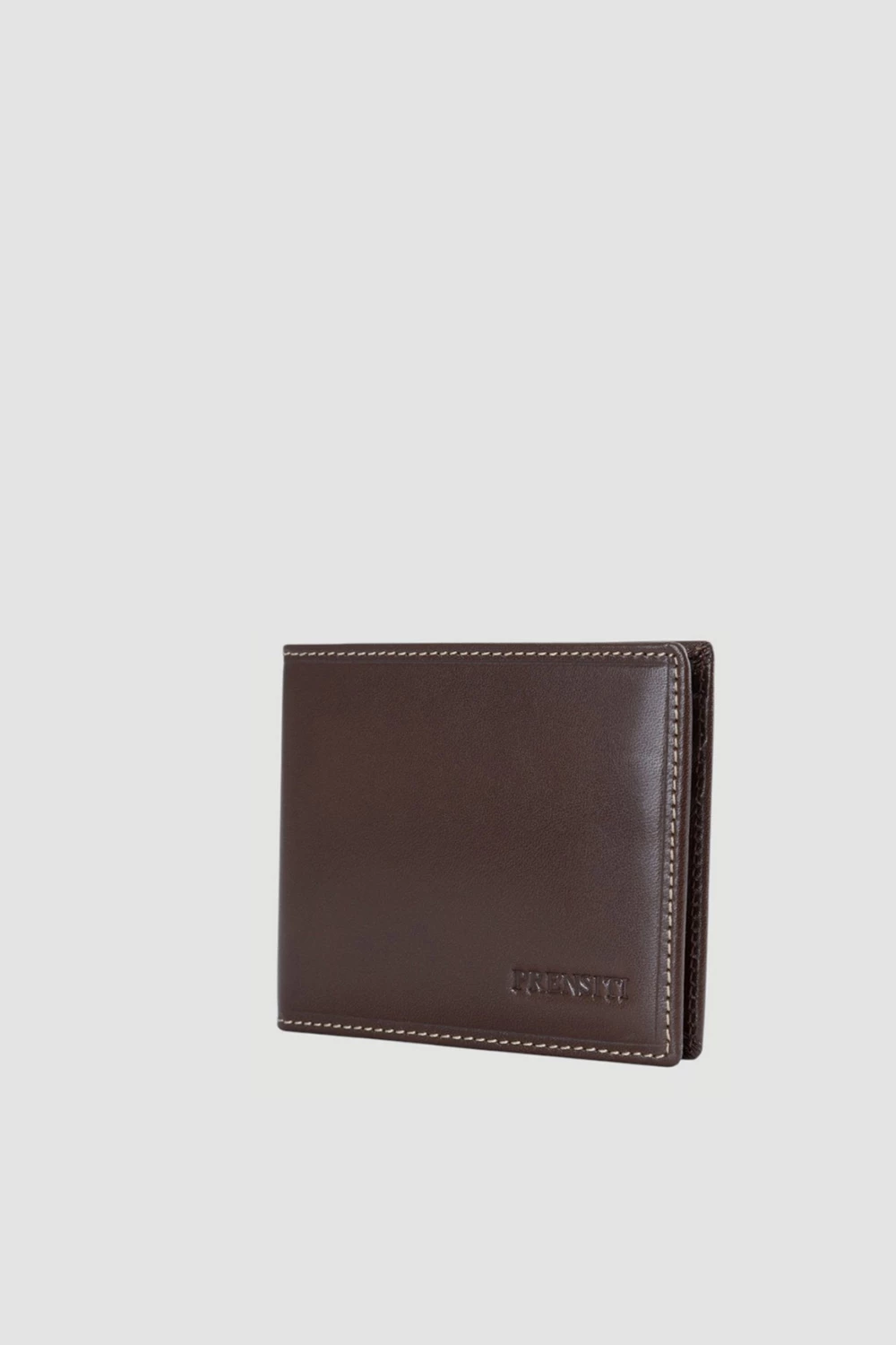 Компактный мужской кошелек коричневого цвета с отделением для купюр и слотом для карт. Удобен для ежедневного ношения, изготовлен из натуральной кожи.