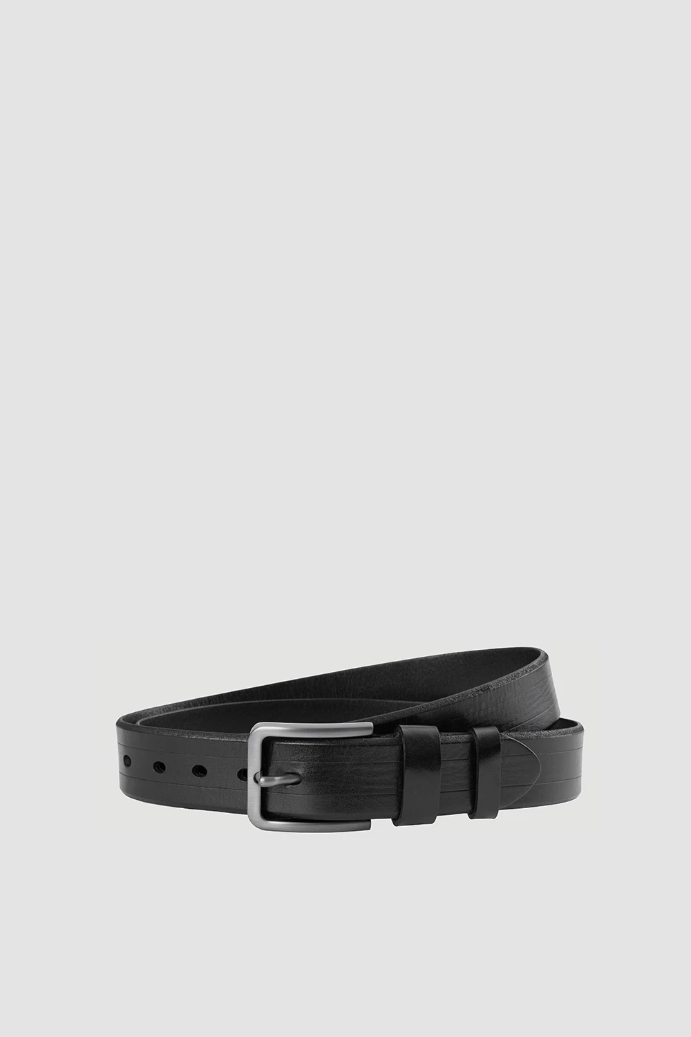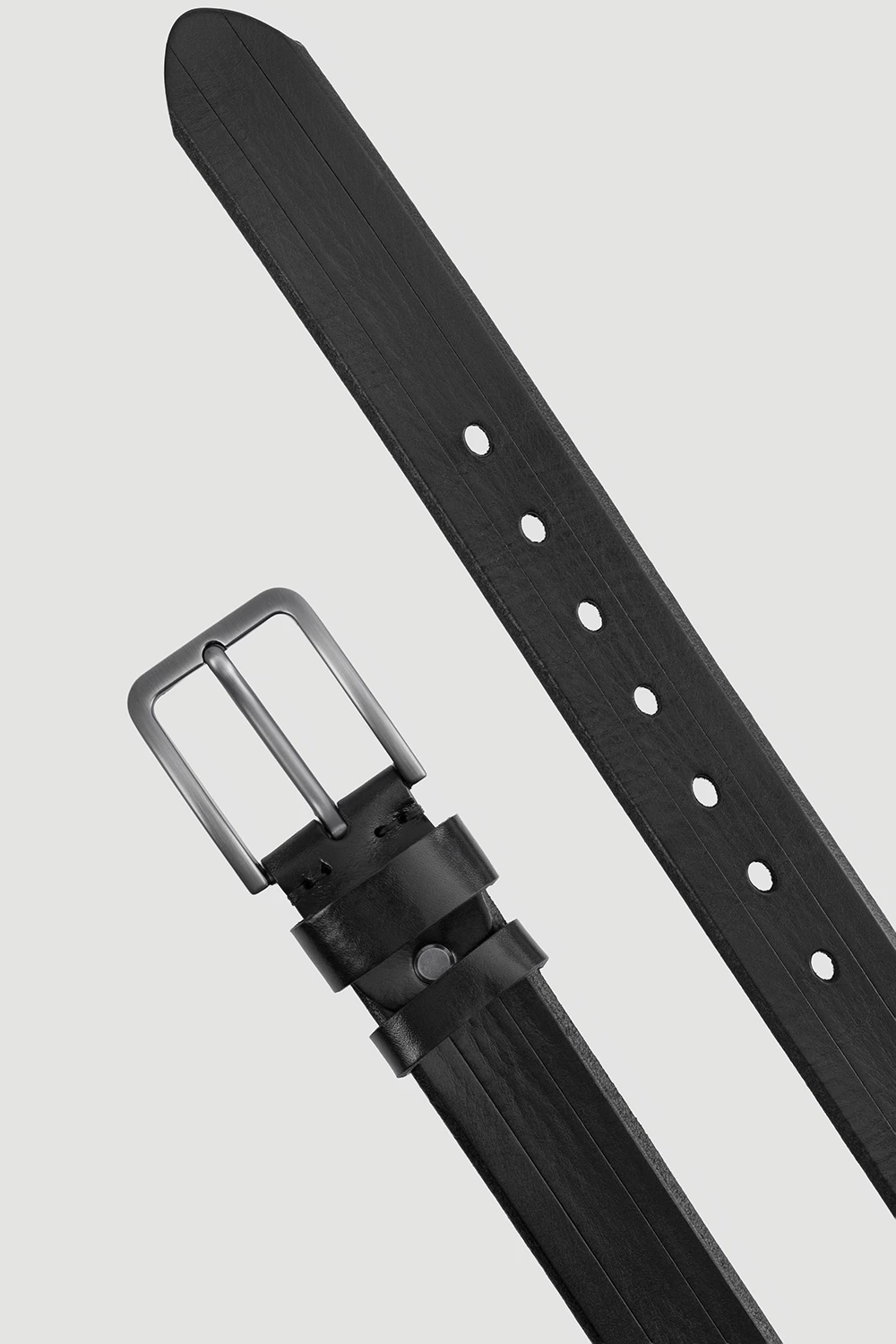 Мужской ремень из натуральной гладкой кожи чёрного цвета. Отличается элегантностью и простотой, подойдёт к брюкам и создаст завершённый образ.Длина