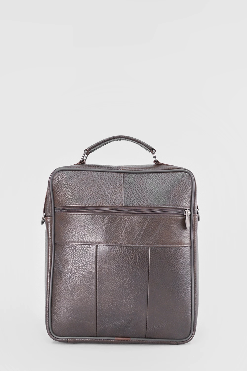 Мужская сумка через плечо из натуральной кожи коричневого цвета. Одно просторное отделение на молнии, четыре внешних кармана. Универсальная модель для городских прогулок и деловых встреч.● внешние карманы на замке для мелочей