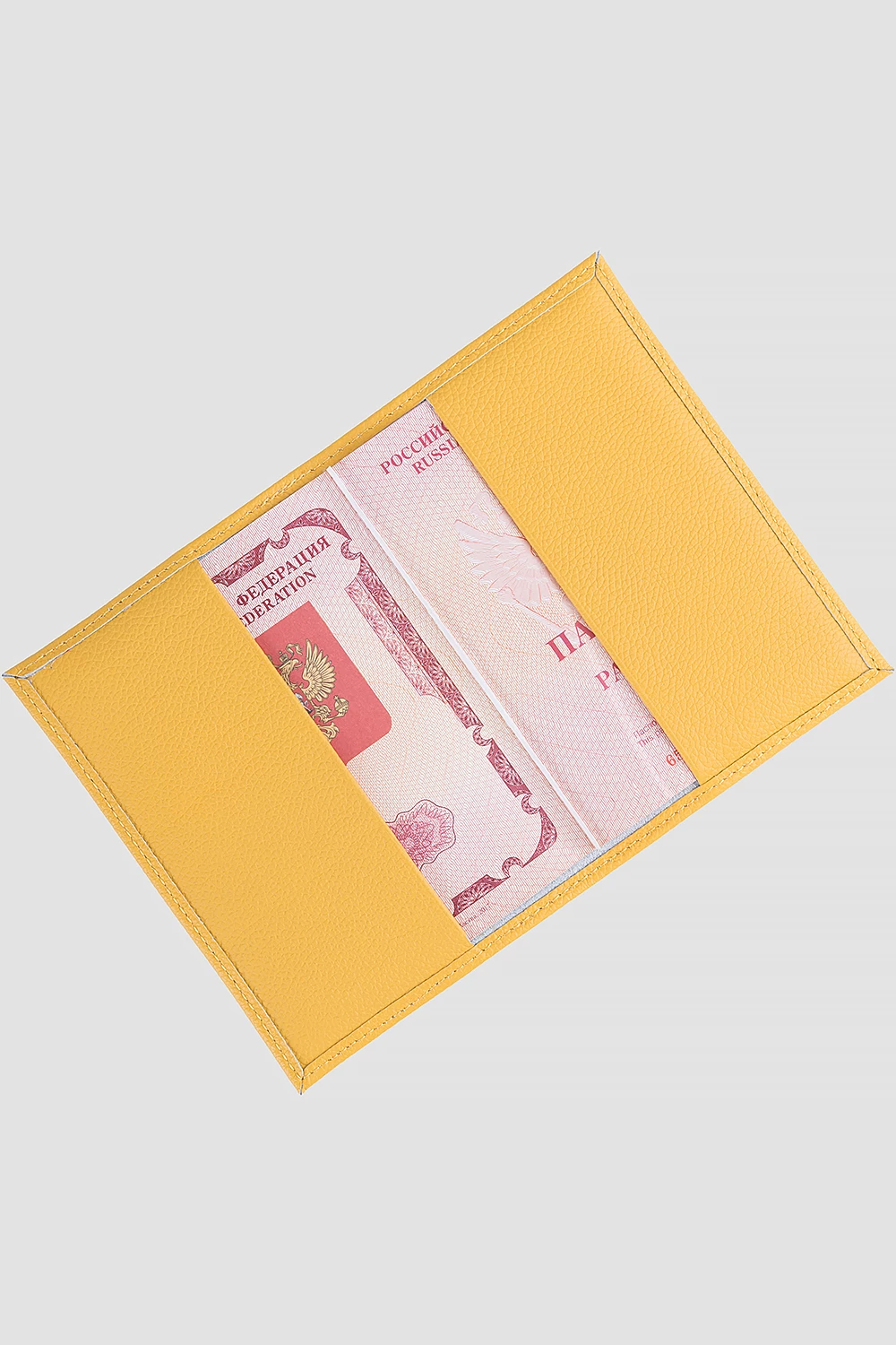 Желтая обложка на паспорт из натуральной кожи - яркий и стильный аксессуар. Привлекает внимание насыщенным оттенком, защищает документ, приятно удивляет мягким материалом.