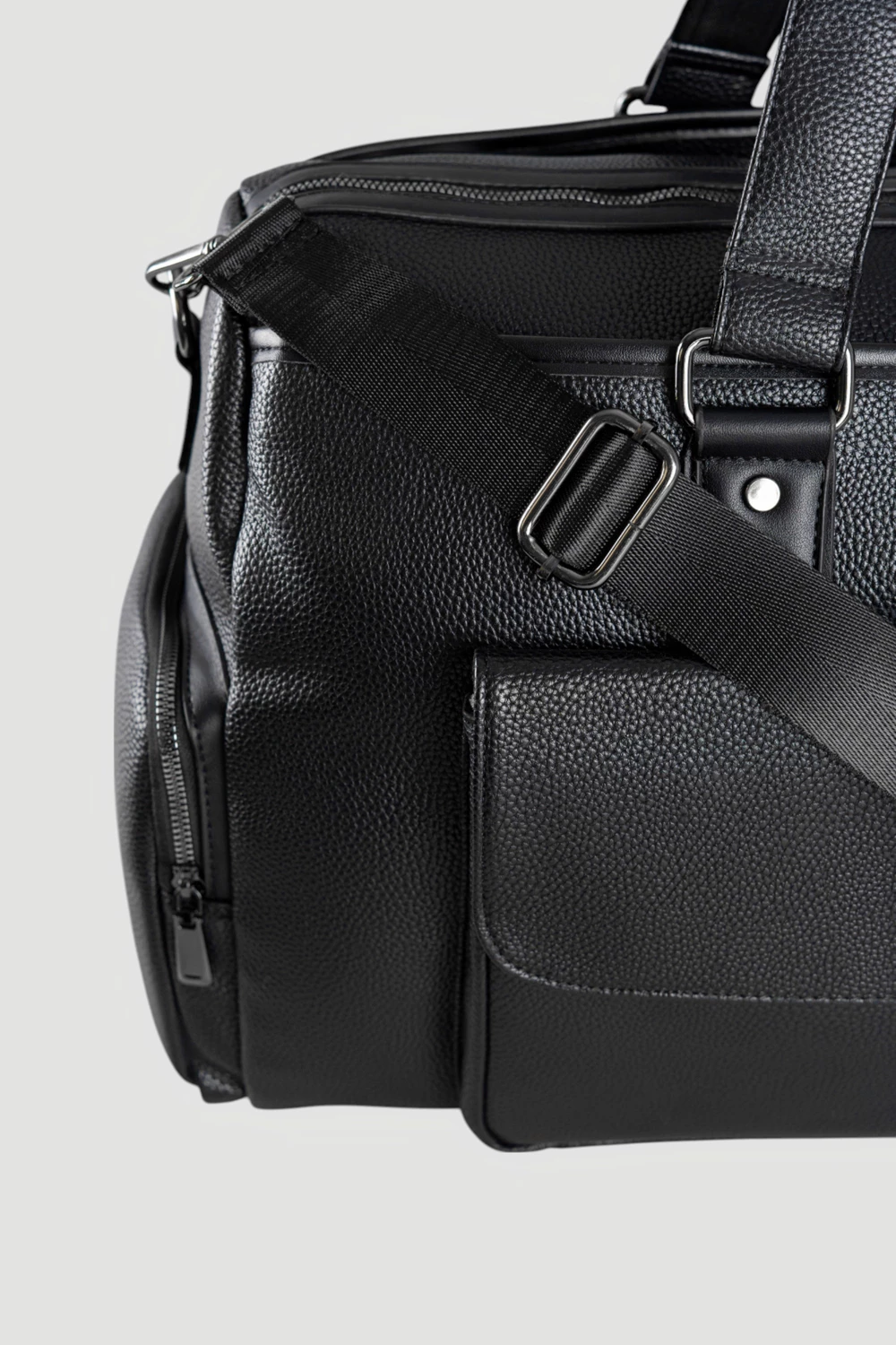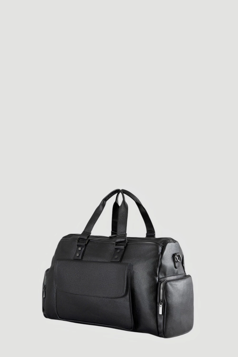 Черная дорожная сумка из прочной экокожи - аксессуар для путешествий, спортзала и повседневного использования. Спортивная сумка с карманами на замке и передним карманом на клапане для быстрого доступа к вещам. Вместительное основное отделение подходит для одежды, обуви и спортивного инвентаря.Экокожа сохранит долговечность и устойчивость к ежедневным нагрузкам, оставаясь в безупречном виде долгое время.
