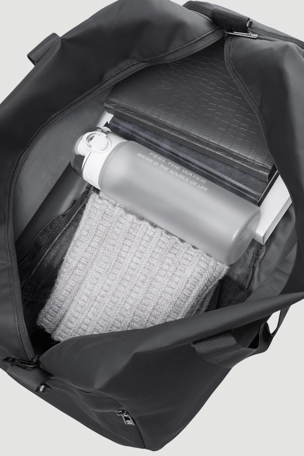 Черная дорожная сумка с единым пространством внутри и внутренним карманом на молнии. Внешняя поверхность оснащена двумя карманами на молнии и одним открытым. В комплект включен текстильный ремень. Выбор для комфорта в дороге.Размер