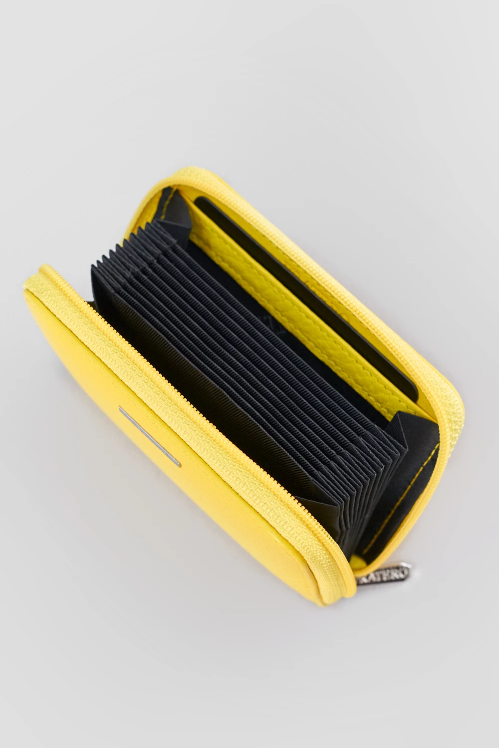 Картхолдер солнечного жёлтого цвета из натуральной кожи. Предусмотрен внутренний кармашек-гармошка для размещения нескольких карточек и визитных карточек. Великолепно смотрится в руках и привносит солнечное настроение даже в дождливый день.