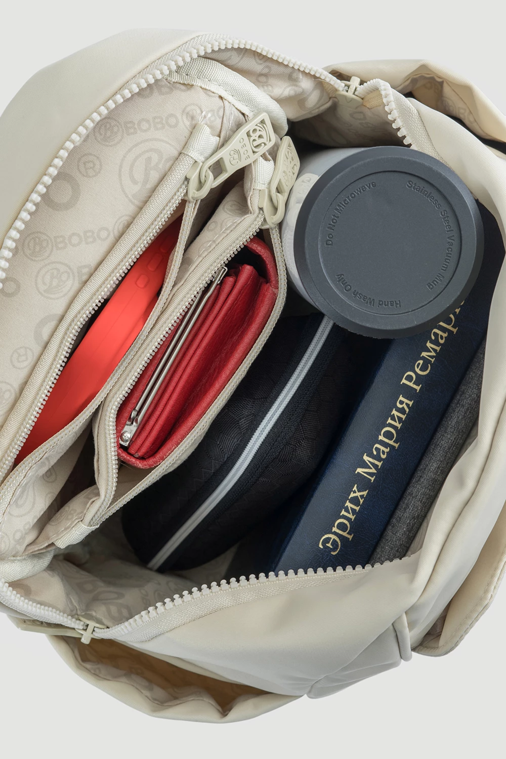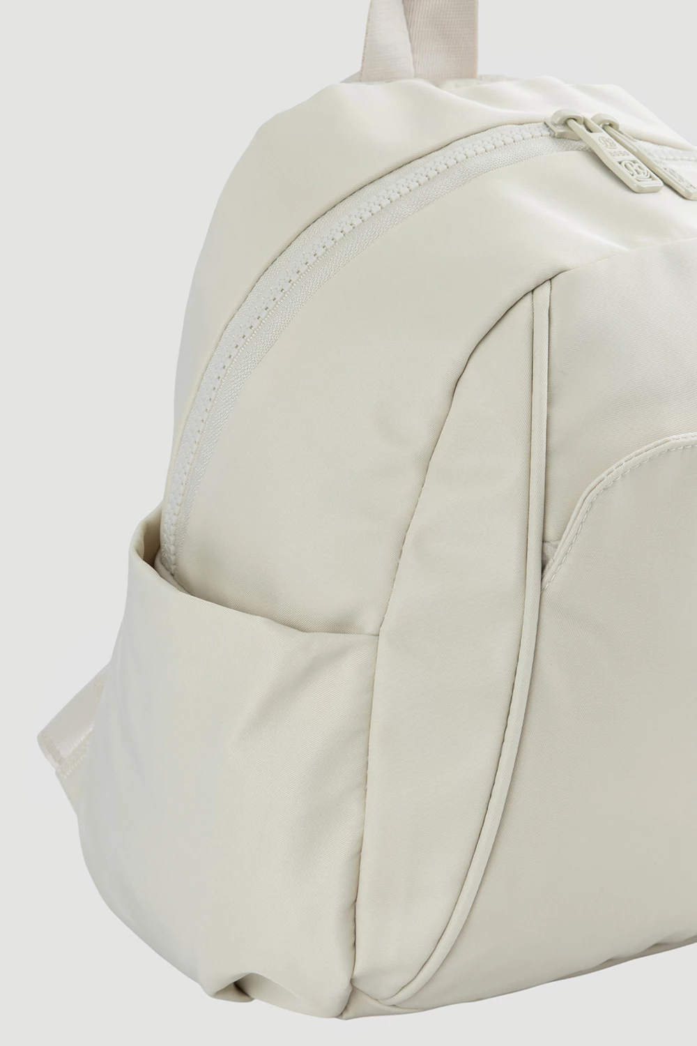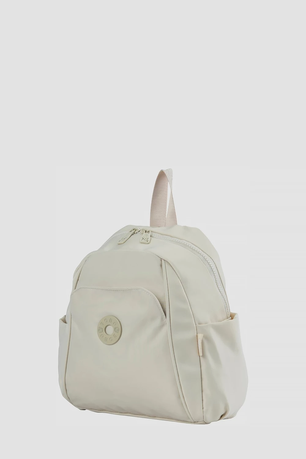Женский бежевый рюкзак из текстиля с одним отделением, внутри два кармана на молнии. Снаружи два боковых кармана, переднее отделение и задний карман на молнии для мелочей. Универсальная модель для городских прогулок и путешествий.● текстильный подклад
