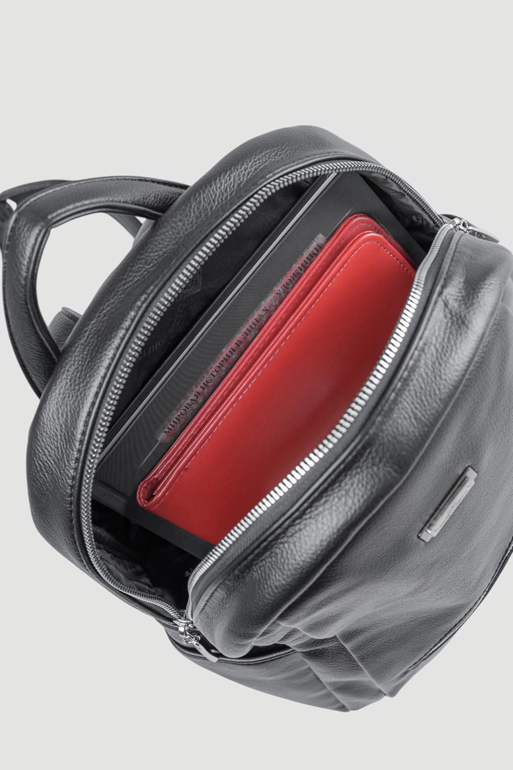 Черная сумка-рюкзак из экокожи — функциональный аксессуар для повседневного использования. Модель оснащена одним отделением на надежном замке, двумя боковыми открытыми карманами и дополнительным вместительным карманом на молнии впереди.Внимание уделено безопасности вещей владельца благодаря скрытому потайному карману на спинке изделия. Элегантный черный оттенок экокожи подчеркнет индивидуальность стиля и гармонично дополнит образ.