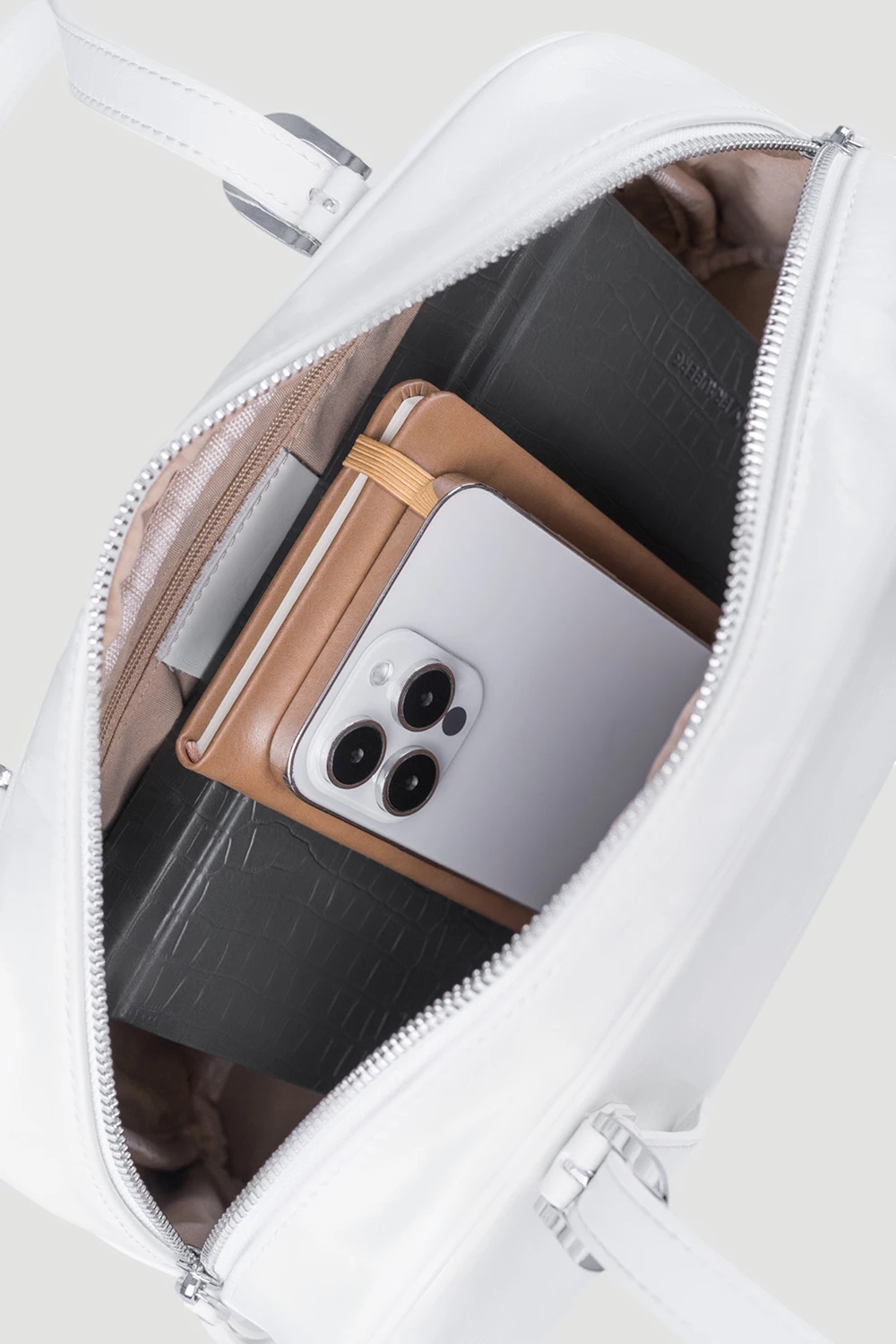 Женская сумка-багет в изысканном жемчужно-белом цвете станет незаменимым аксессуаром в гардеробе такой же изысканной и прекрасной обладательницы. Эта сумочка привлечет к себе внимание своим простым, но при этом утонченным дизайном. Сумка-багет оснащена универсальной ручкой, которая позволяет носить её как на плече, так и в руке. В эту сумочку поместится не только кошелек и телефон, но и прочие, не менее важные предметы.● одно основное внутреннее отделение