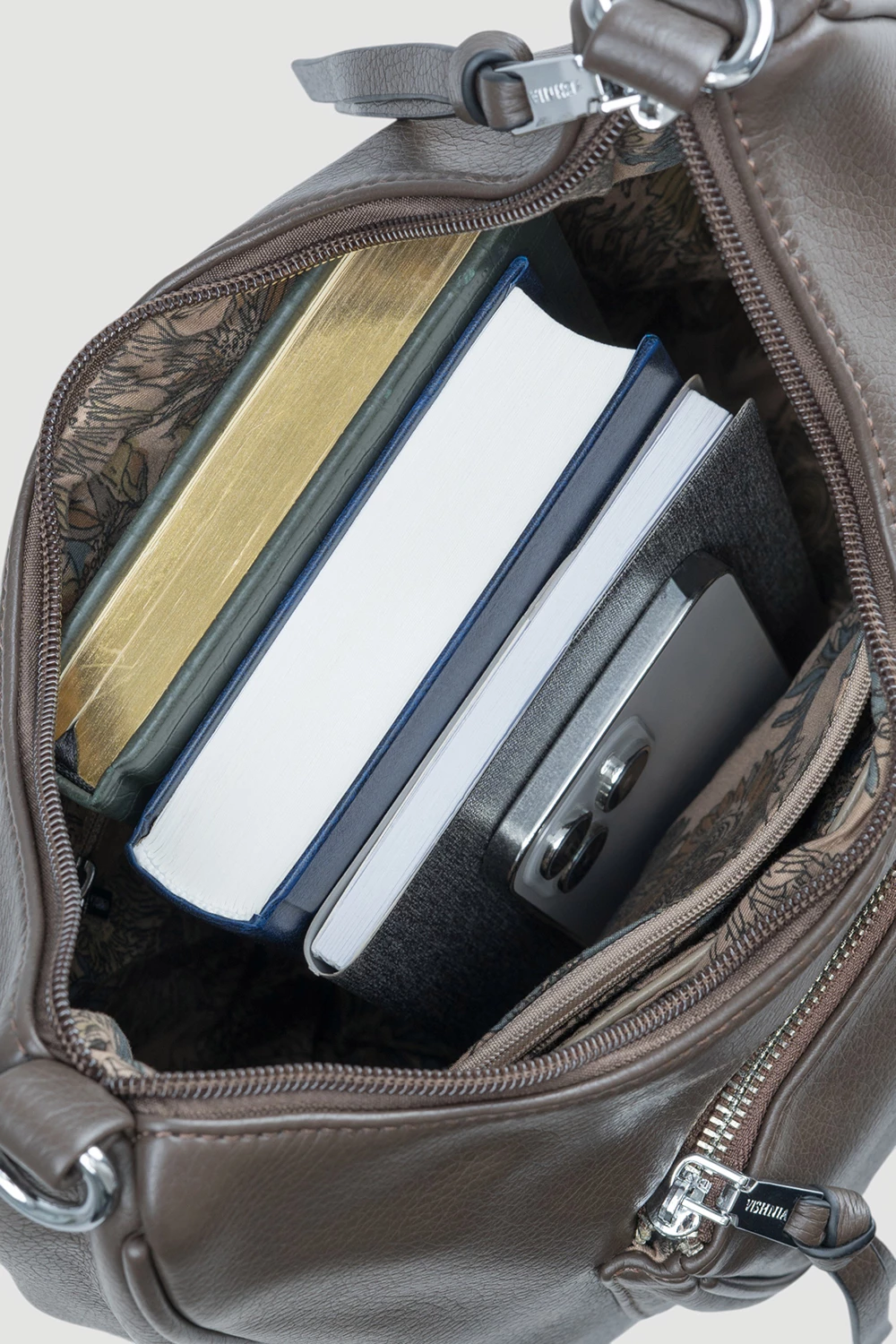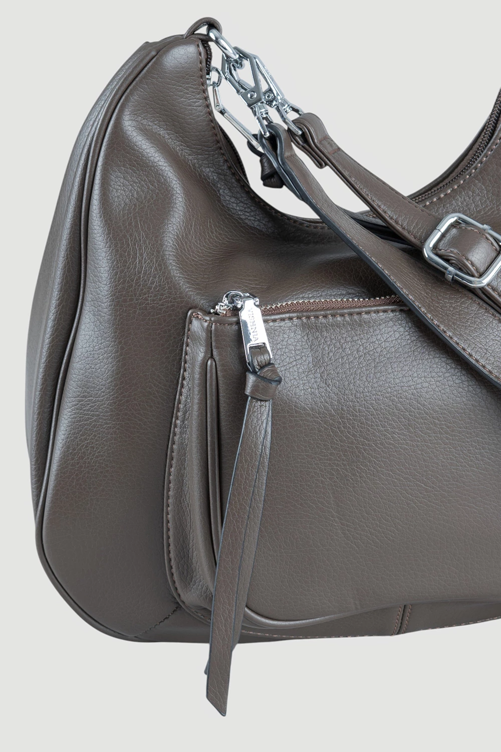 Женская сумка-хобо в коричневом оттенке, отличается практичностью и вместительностью. Изогнутая форма придаёт сумочке элегантный вид, а цвет сможет сочетаться с различными образами.● в комплекте короткий и длинный ремешки