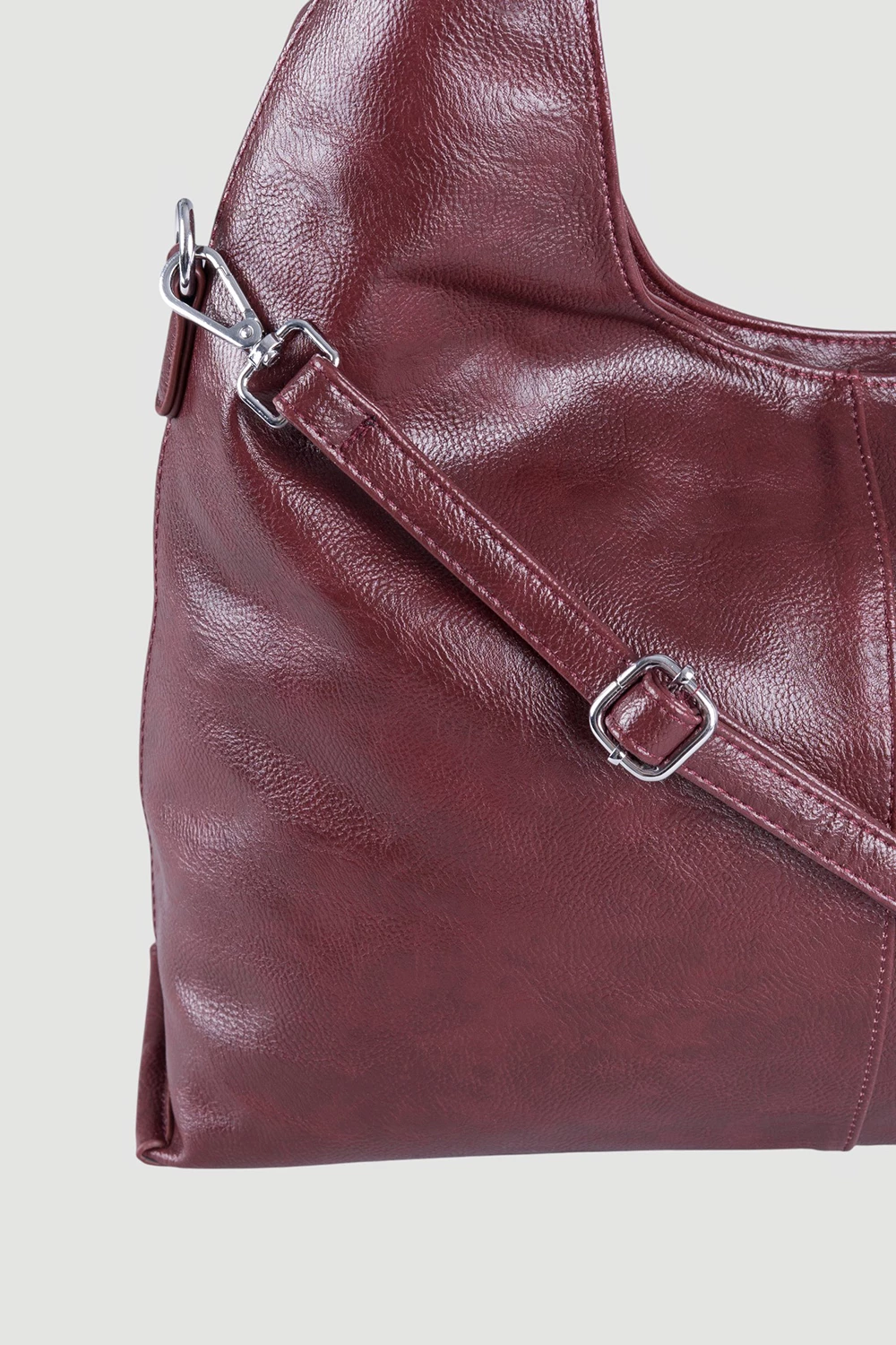 Красная сумка-мешок из экокожи - смелый акцент для образа. Модель с универсальным съемным ремнем и верхней ручкой. Сзади - кармана на молнии для организации мелочей.Вместительное основное отделение подходит для повседневного использования. Внутри предусмотрено два кармана: один на молнии и один открытый для доступа к часто используемым предметам.