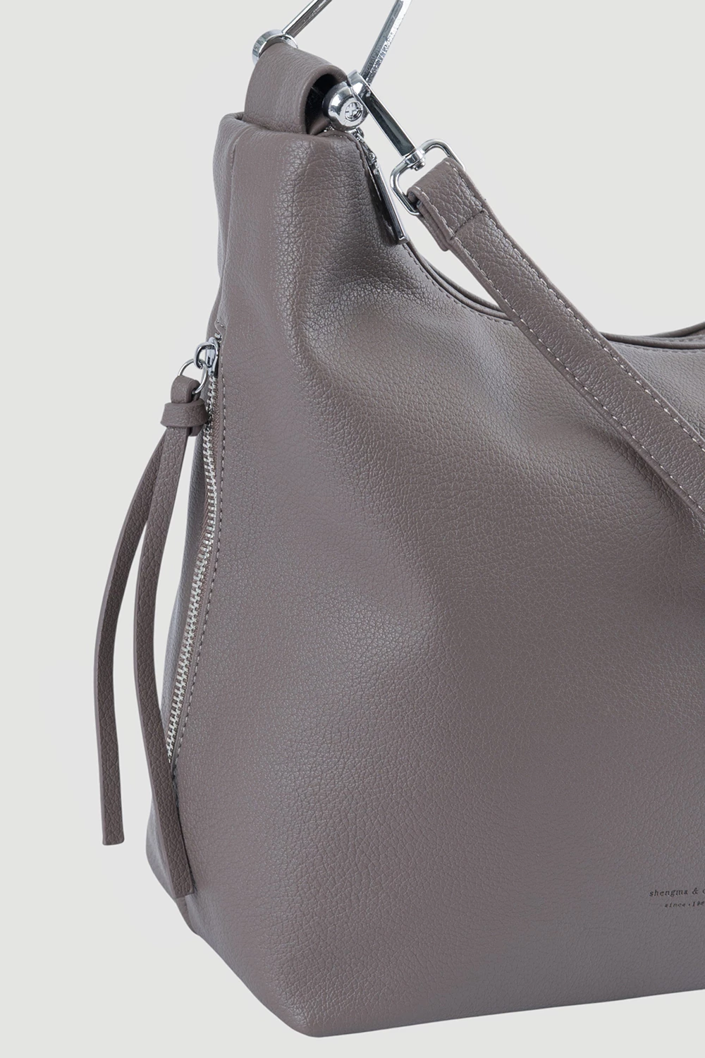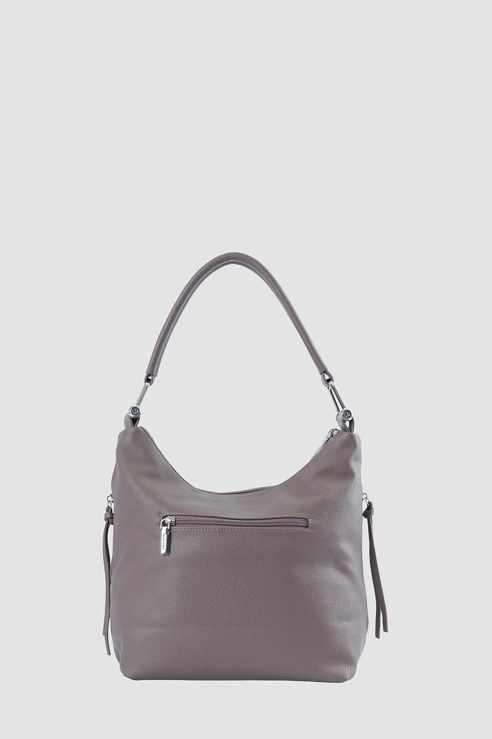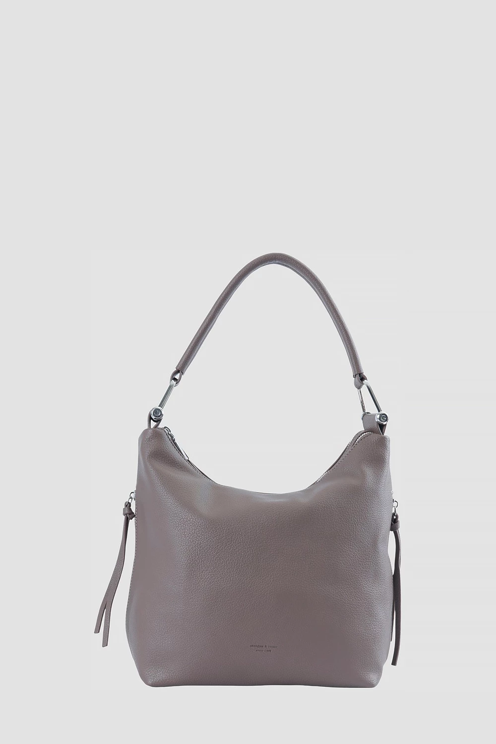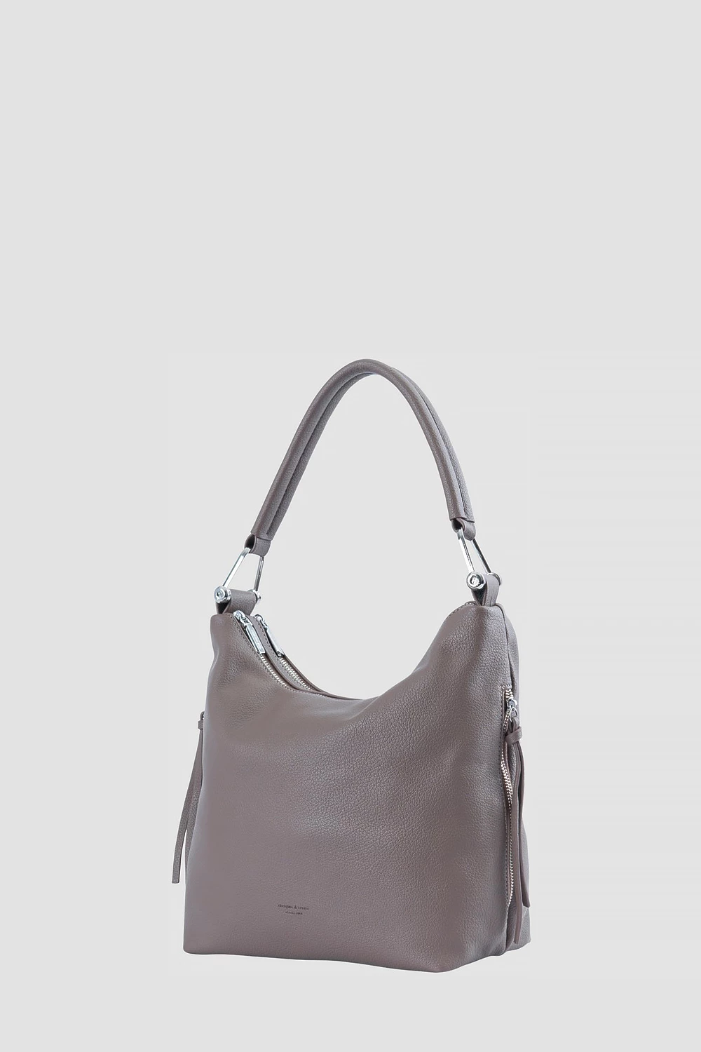 Коричневая сумка мешок, отличающаяся простотой дизайна и утонченностью форм. Оснащена двумя секциями на молнии и двумя внешними боковыми карманами. Внутреннее устройство включает один открытый карман и один закрытый на молнии.Комплектация состоит из одного регулируемого длинного ремешка. Задняя сторона изделия оснащена внешним карманом на молнии.