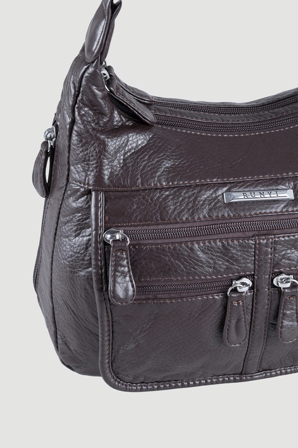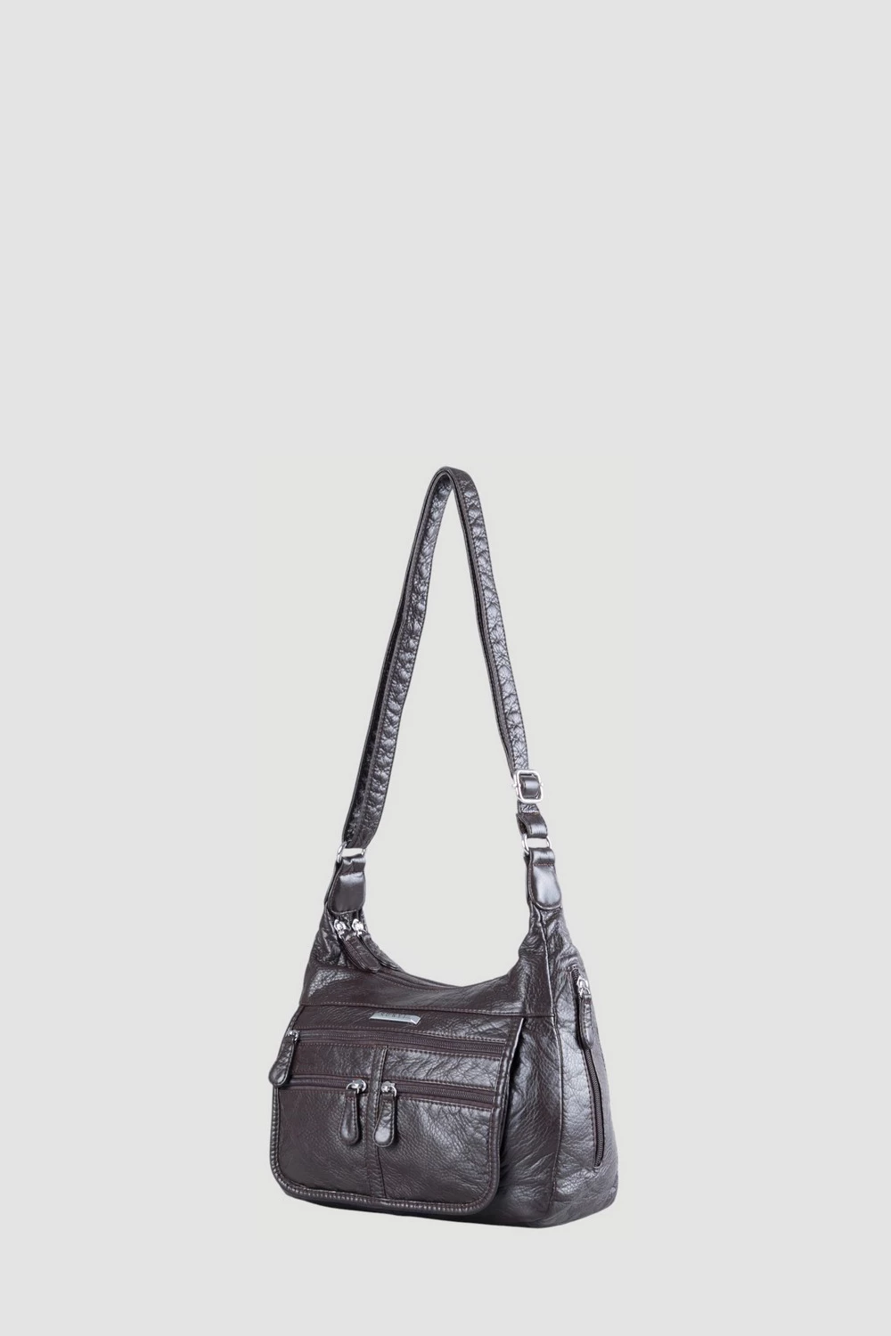 Коричневая сумка-мессенджер с двумя отсеками на молниях дополнена внутренним открытым отделением и дополнительным внутренним карманом также на молнии.Внешняя сторона изделия оборудована задним карманом на молнию и тремя передними карманами различной конфигурации, а боковые стороны украшены карманами на замках. Модель предназначена для повседневной носки, городских прогулок, посещения занятий или офиса, а также путешествий.