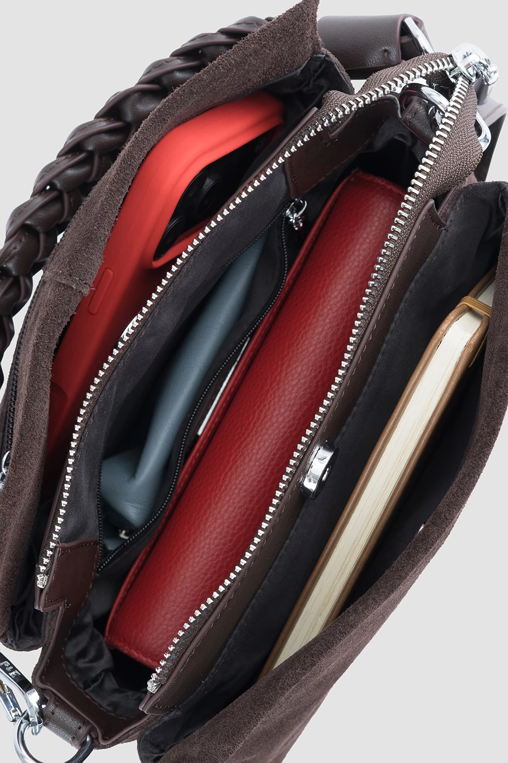 Коричневый велюровый мессенджер. Приятный на ощупь аксессуар из мягкой ворсистой ткани в тёплом оттенке. Оснащён одним главным отделением на молнии, двумя меньшими на магнитах и секретным карманом на спине.Комплектуется двумя ремнями из натуральной кожи: стандартным для комфорта и декоративным для создания оригинальных сочетаний.