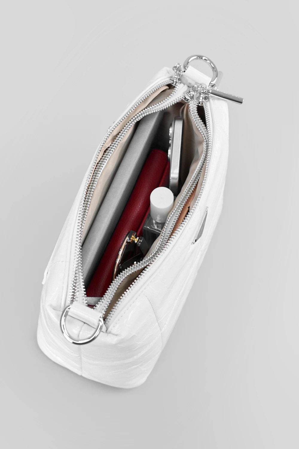 Данная модель, несмотря на свой небольшой размер, является вместительным аксессуаром с тремя отделами на молнии, который отлично обеспечивает место для необходимых вещей. В комплектации имеется длинный ремень и короткий ремень, а светлый оттенок притягивает взгляды.Стильный и незамысловатый мессенджер отлично подойдет к любому гардеробу!