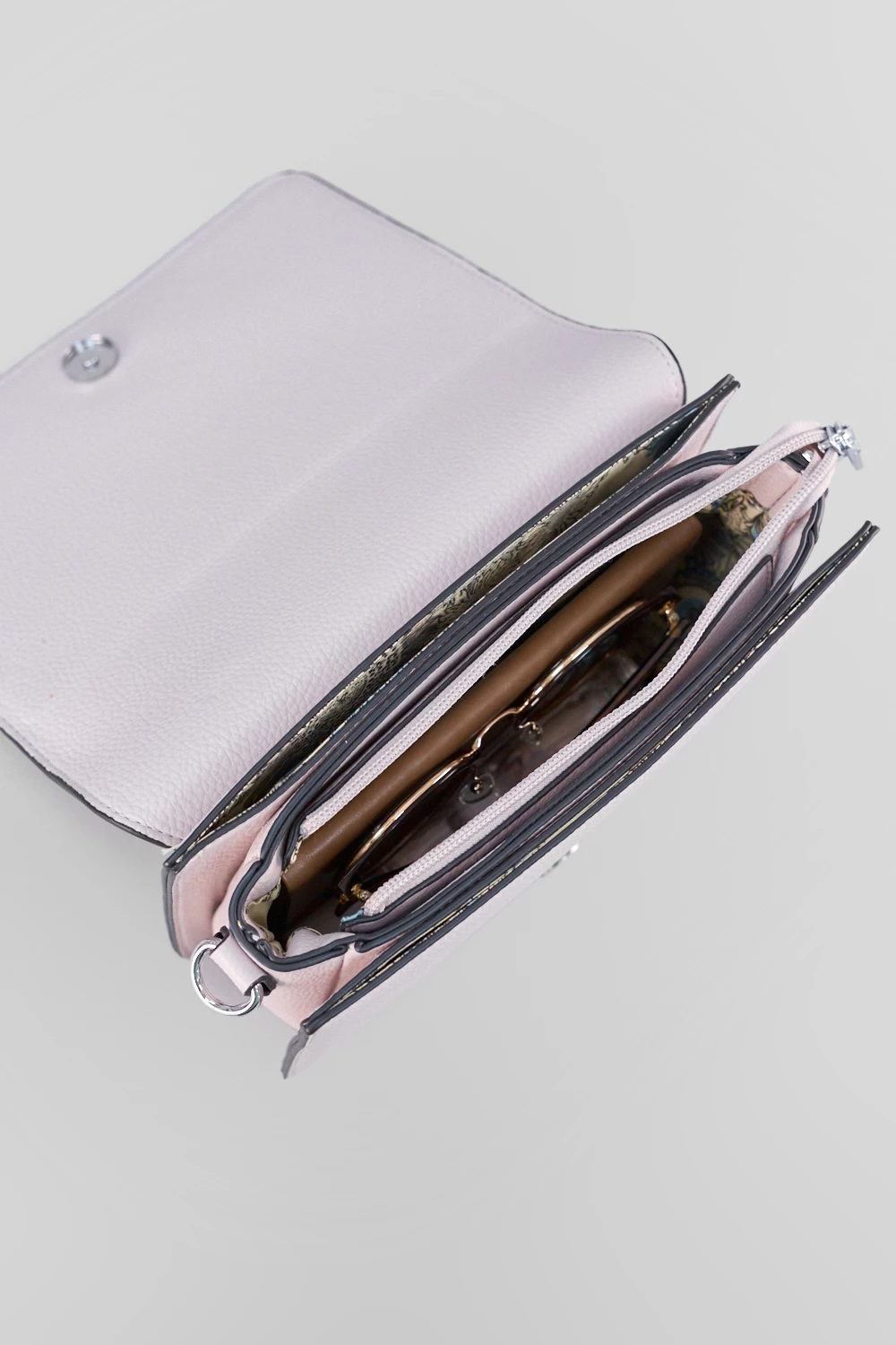 Женская сумка-мессенджер светло-серого цвета из экокожи. Универсальный съемный ремень с регулировкой длины. Внутри три отделения один отдел на молнии. Надежная магнитная застежка. Светло-серый оттенок сочетается с разными стилями одежды.● внутри два открытый отдела и один отдел на молнии