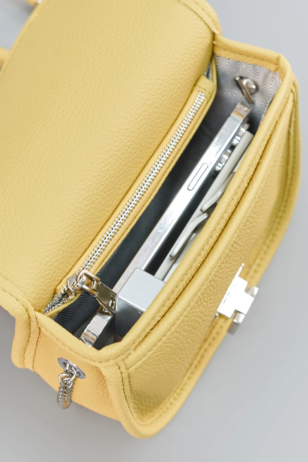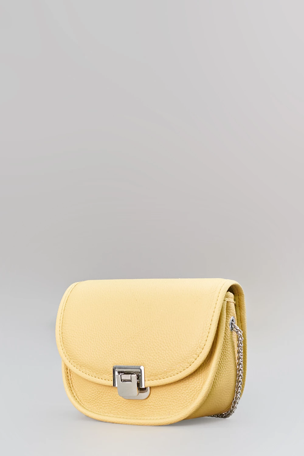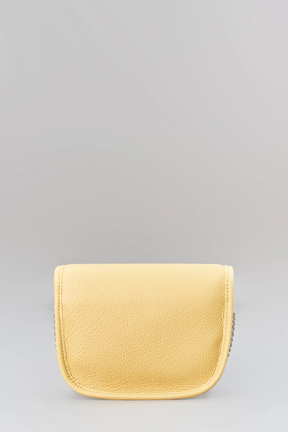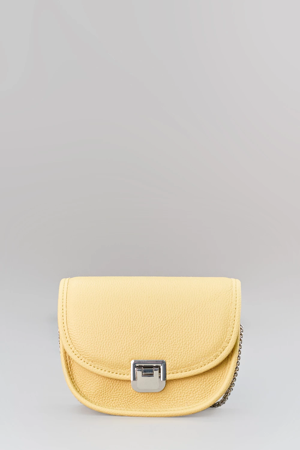 Яркая сумочка сэдл солнечного желтого цвета из натуральной кожи. Цепочка с кожаной вставкой для комфорта при ношении. Сочетается с летним сарафаном и светлыми образами. Женская сумка стильный аксессуар для теплого сезона.● нерегулируемый ремень