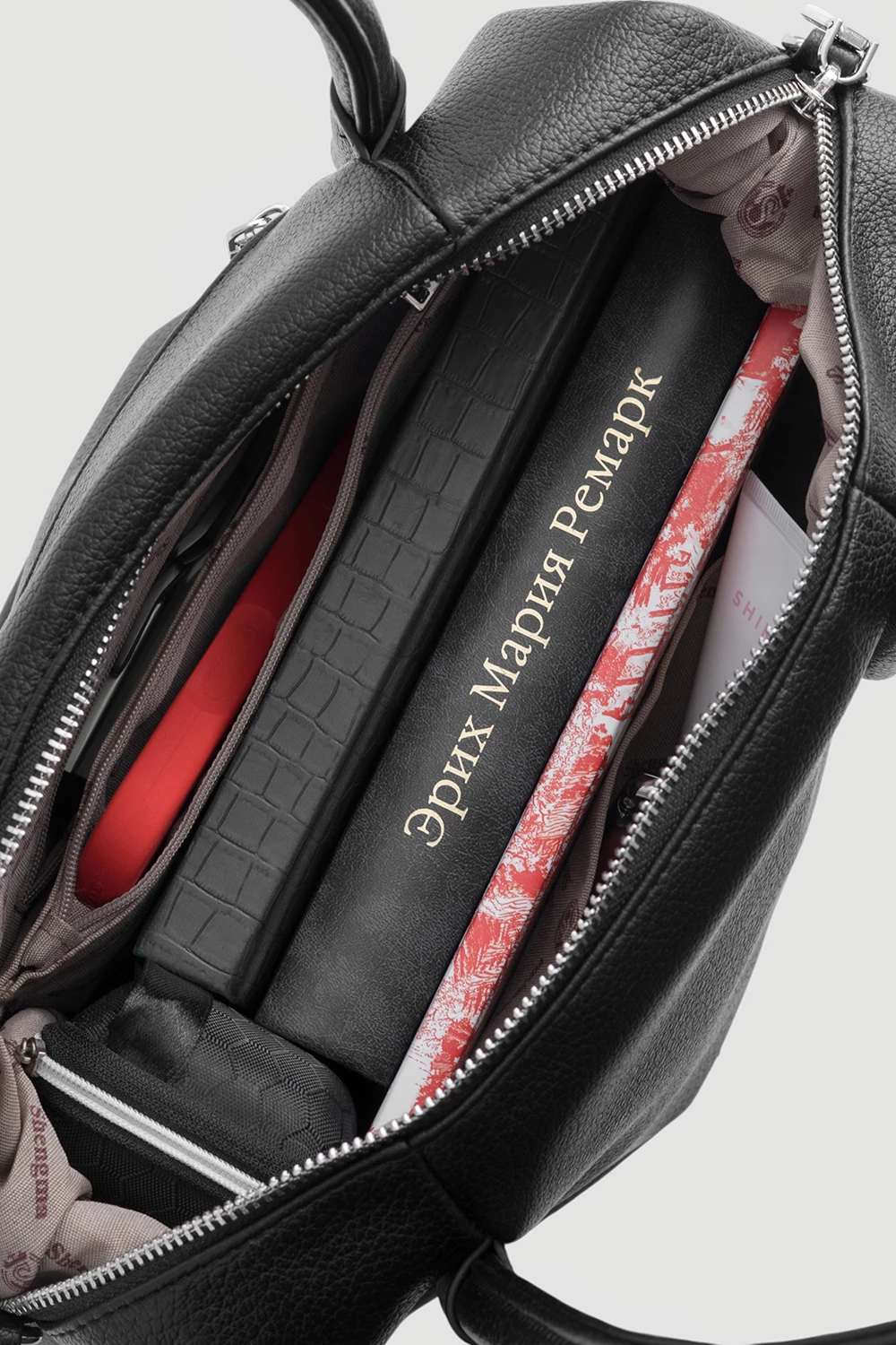 Функциональная сумка-саквояж с лаконичным дизайном станет дополнением гардероба. Внутри предусмотрено одно отделение на молнии, дополнительно оборудованное двумя закрытыми карманами на молнии и одним открытым для удобства хранения аксессуаров.Внешняя сторона украшена дополнительным наружным карманом на молнии. Регулируемый ремешок позволяет носить аксессуар на плече или в руке, обеспечивая комфорт.