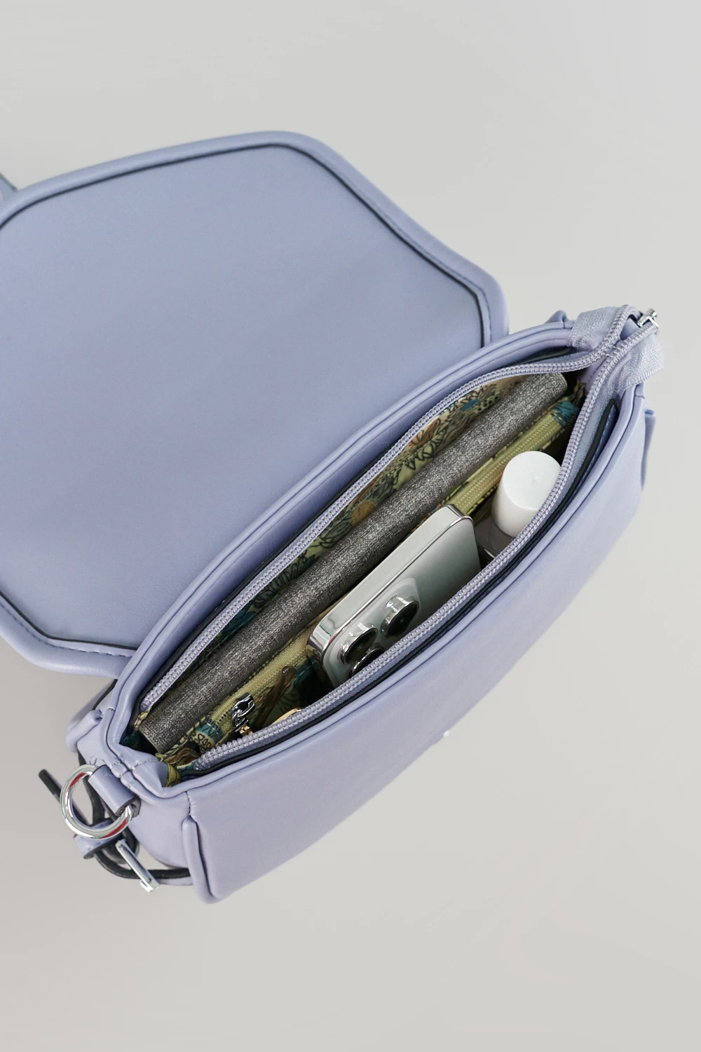 От данного сэдла невозможно оторвать взгляд! Пасмурно-синий оттенок подчеркивается черными линиями по периметру, делая акцент на форме, а внутри найдется место для нужных вещей - косметики, кошелька и ключей. Сделайте выбор в пользу необычного сэдла!