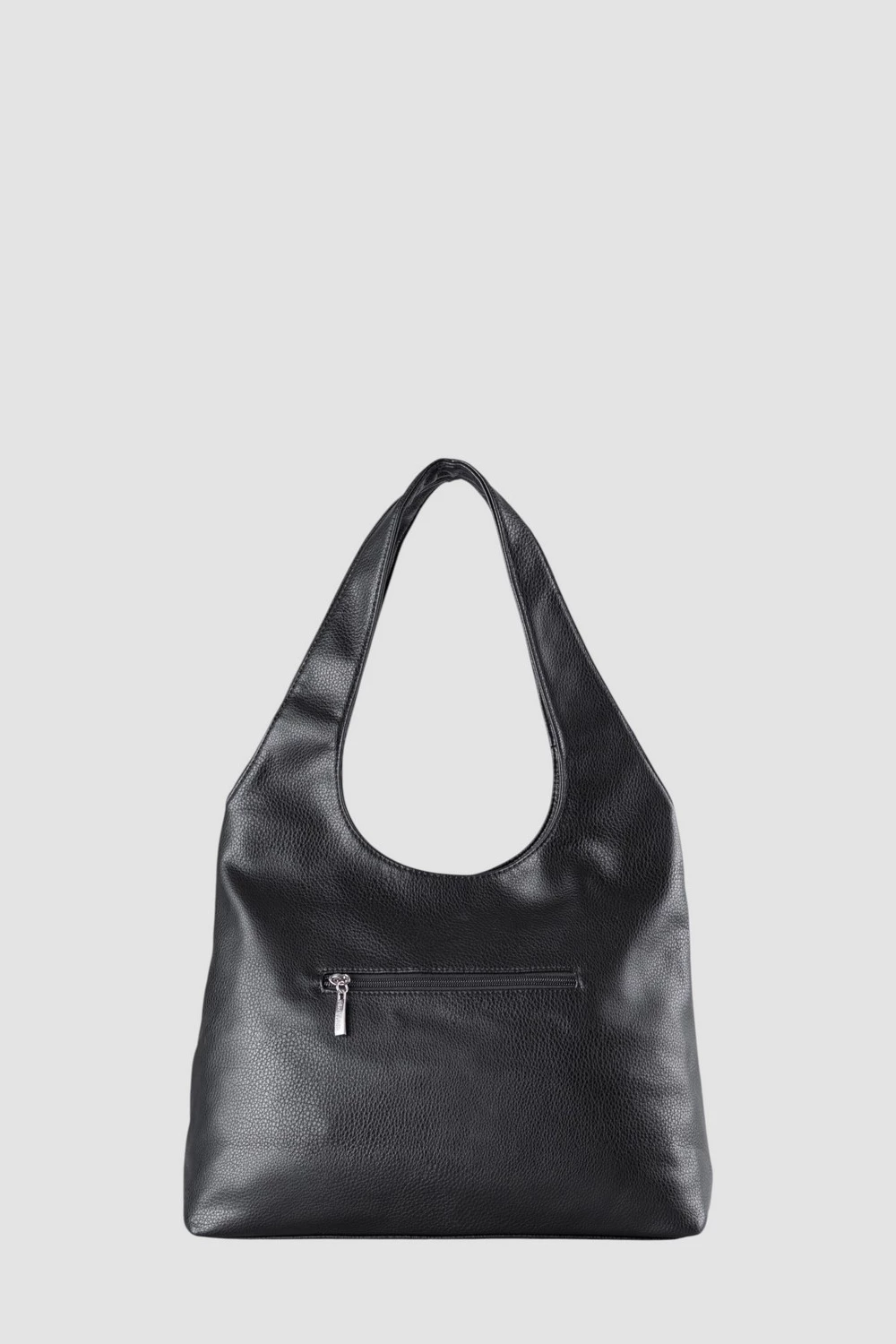 Сумка шоппер чёрного цвета с продуманным внутренним пространством: два отделения разделены карманом на молнии, дополняются двумя открытыми и одним закрытым карманом. Наружная отделка включает задвижной карман на молнии и фронтальный отсек на кнопке.● внешний карман на замке для мелочей