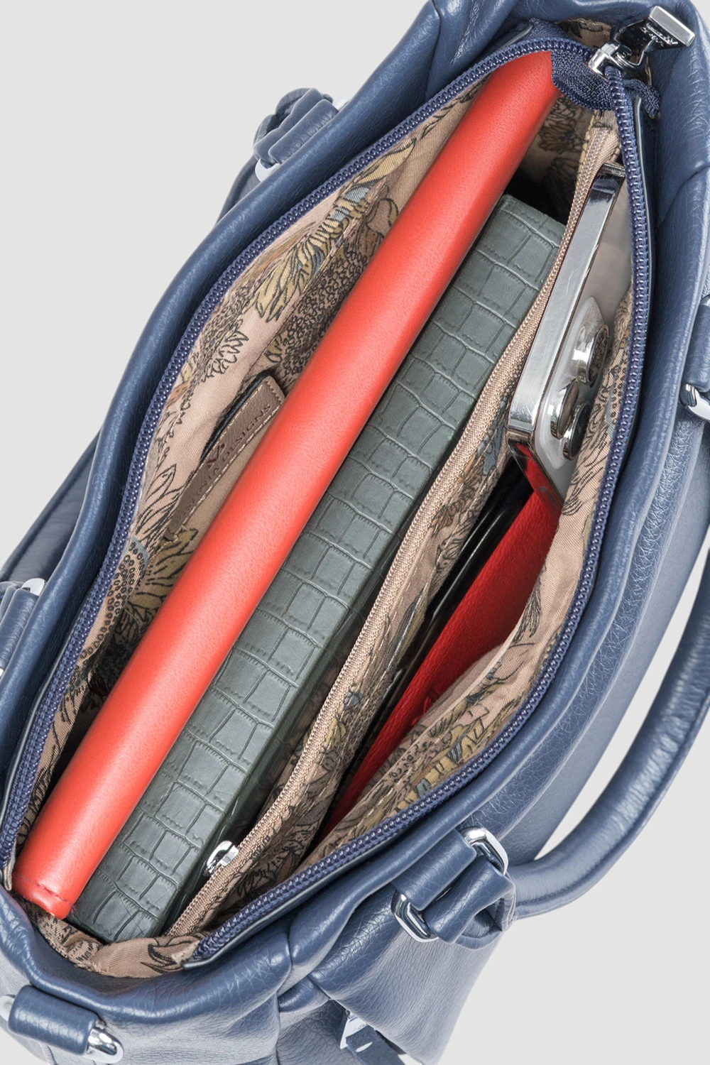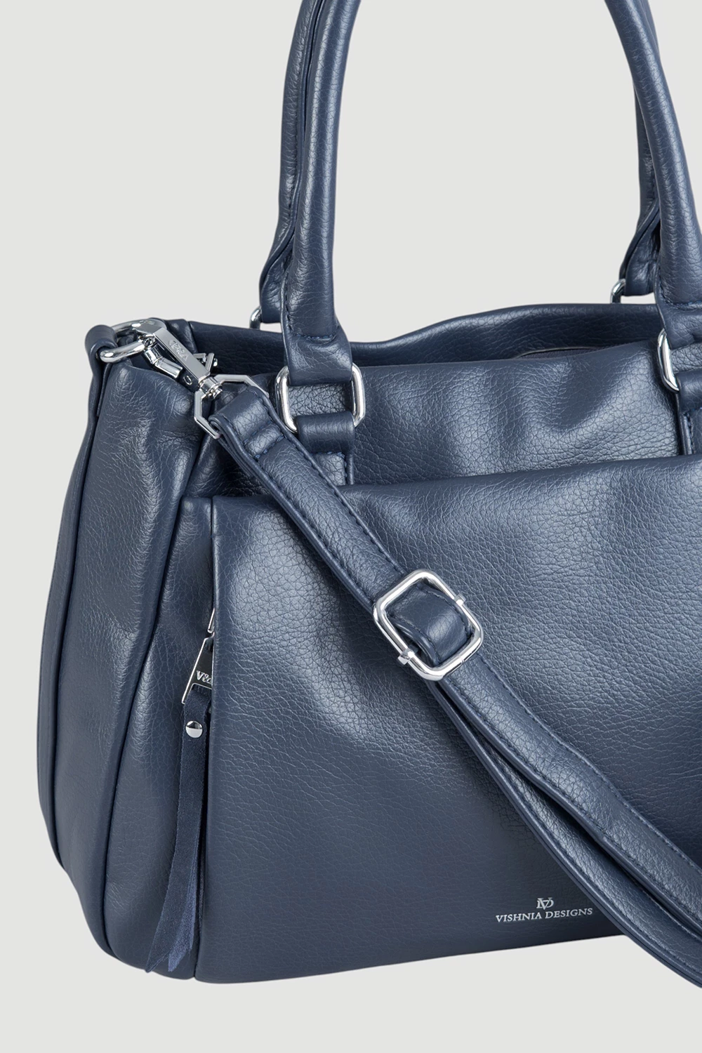 Утончённая женская сумка-тоут в красивом синем цвете. Она отличается вместительностью и интересным дизайном. Изготовлена из мягкой приятной экокожи. Имеет удобные ручки и регулируемый длинный ремешок, чтобы носить сумочку как в руках, так и на плече. Идеально подойдёт и для деловых встреч, и для прогулок.● в комплекте длинный съёмный ремень