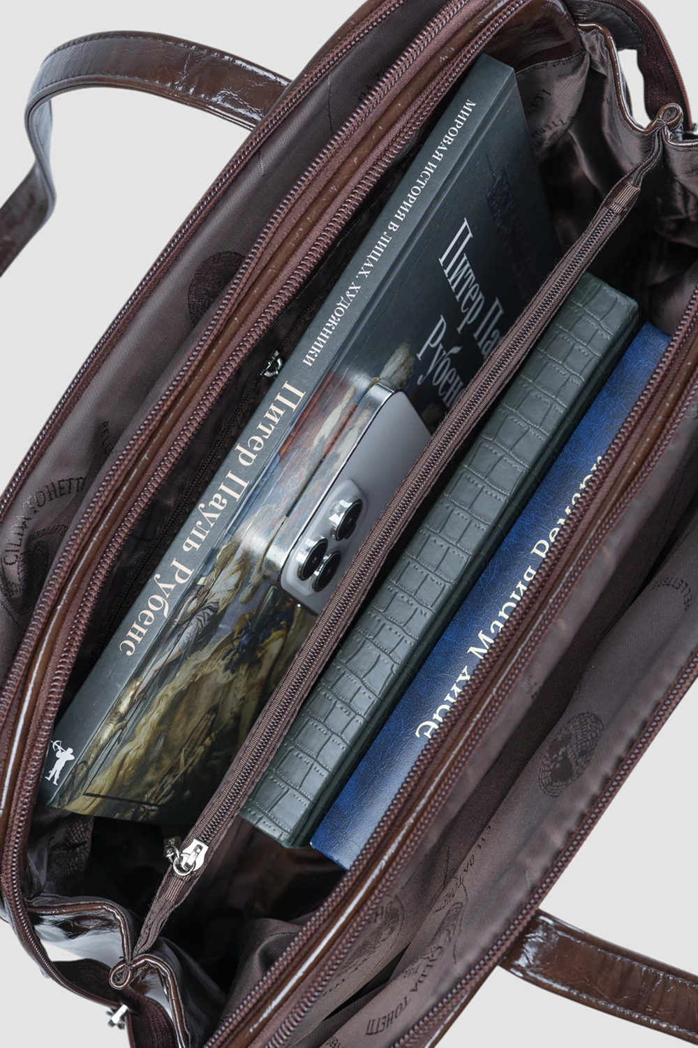 Элегантная женская сумка-тоут в насыщенном коричневом цвете с масляной обработкой, придающая изделию глубокий блеск и долговечность. Коричневый оттенок и универсальная форма сумки-тоут легко сочетается с различными нарядами. Просторная внутренняя конструкция, позволяющая разместить все необходимые вещи.● снаружи один внешний карман для мелочей