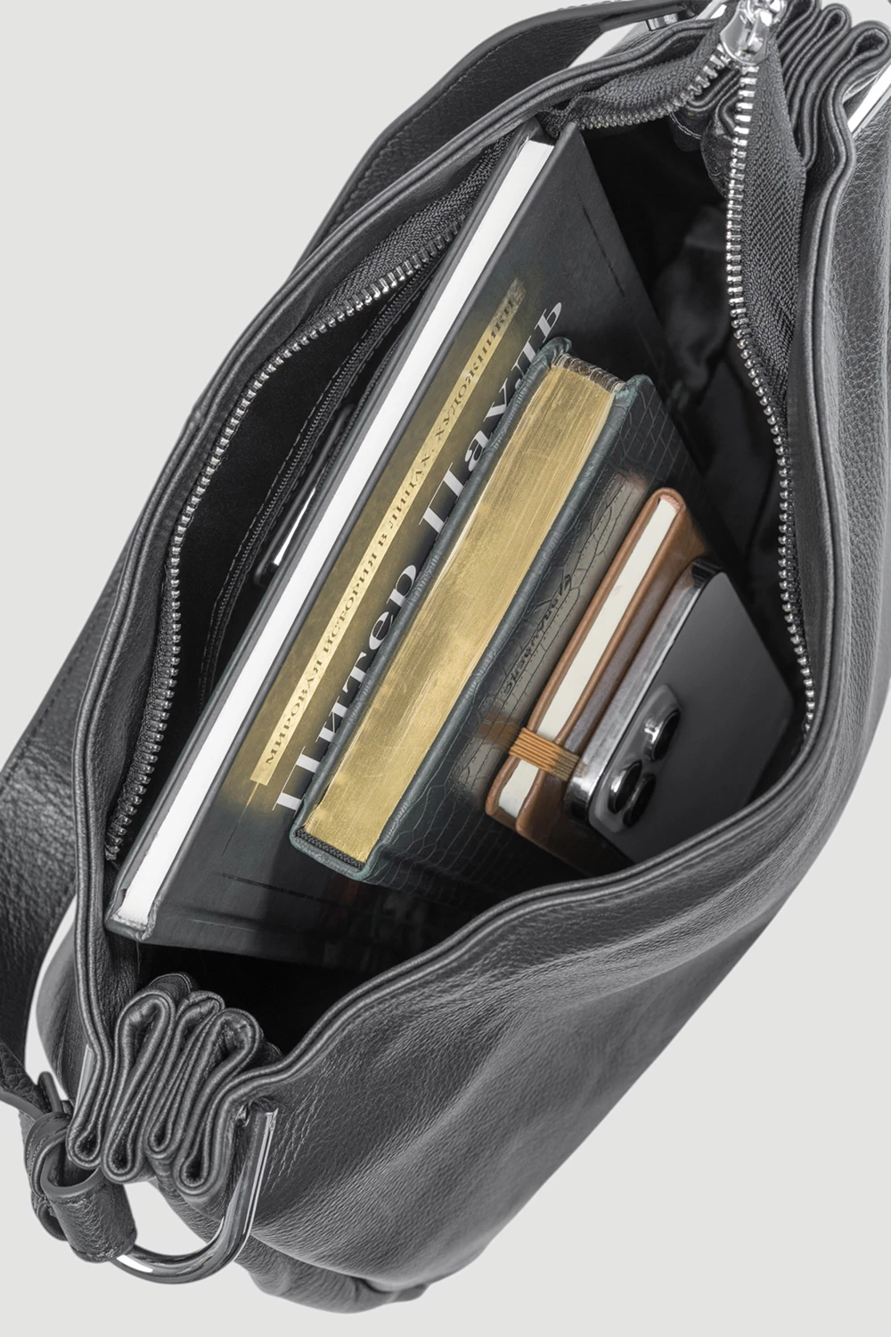 Классическая женская чёрная сумка. Тоут идеально подойдёт как для повседневного использования в офисе или университете, так и для прогулок. Сумочка оснащена несколькими отделениями внутри, что позволяет удобно разместить необходимые вещи.Сумку средних размеров можно носить в руках и на плече благодаря дополнительному длинному ремешку. Изготовленная из качественной искусственной кожи и оснащённая надёжными металлическими деталями, такая сумка долго сохранит привлекательный внешний вид.
