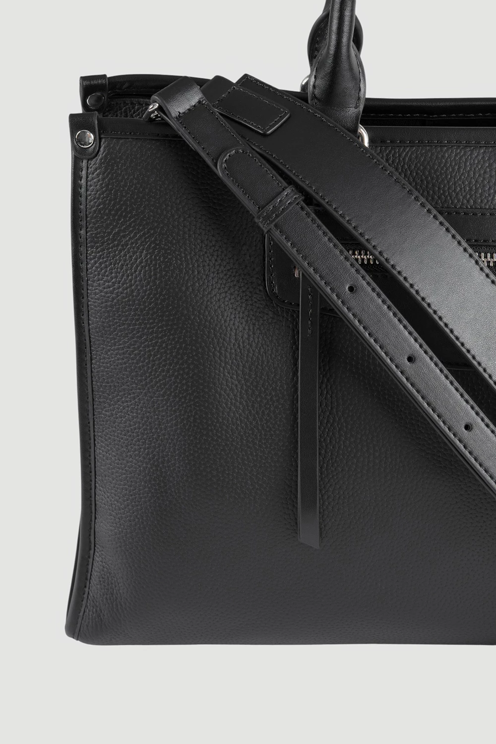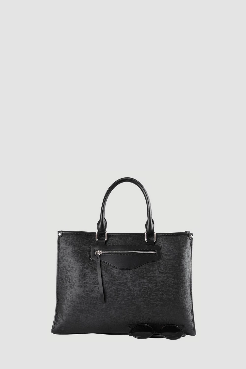 Элегантная черная сумка-тоут подчеркнет индивидуальность и завершит образ. Сделана из прочного материала с изящным дизайном. Передний карман на молнии обеспечивает доступ к необходимым вещам.Внутренне пространство состоит из трех отделов, центральный отдел закрывается на молнию. Внутри два открытых кармана и дополнительный на молнии. В комплект входят два ремня разной длины широкий, средний длинный.