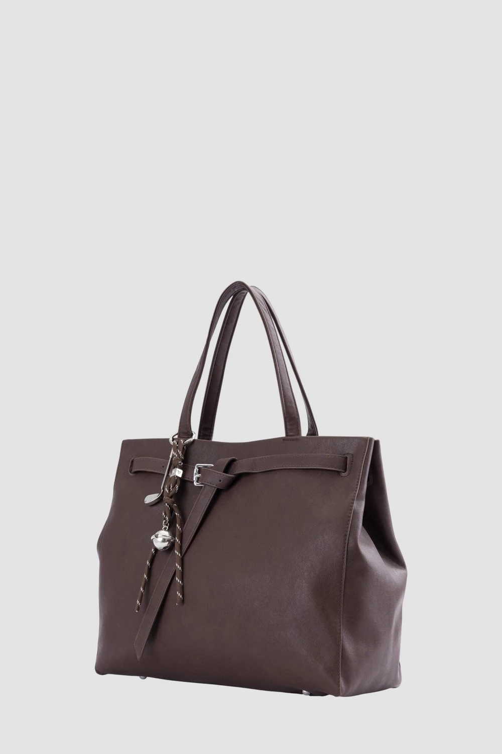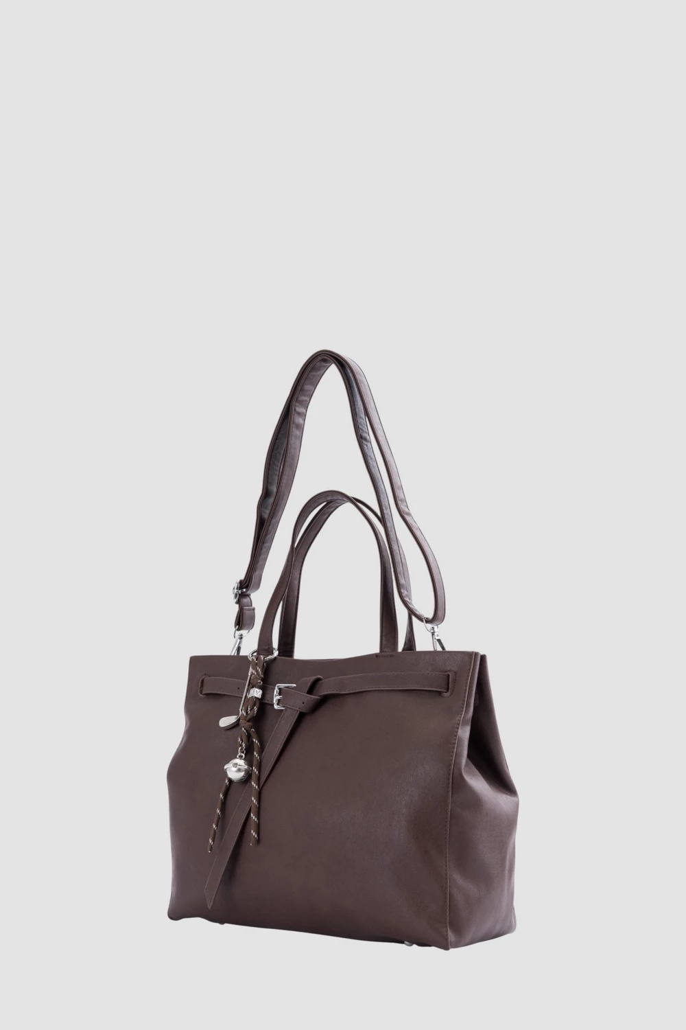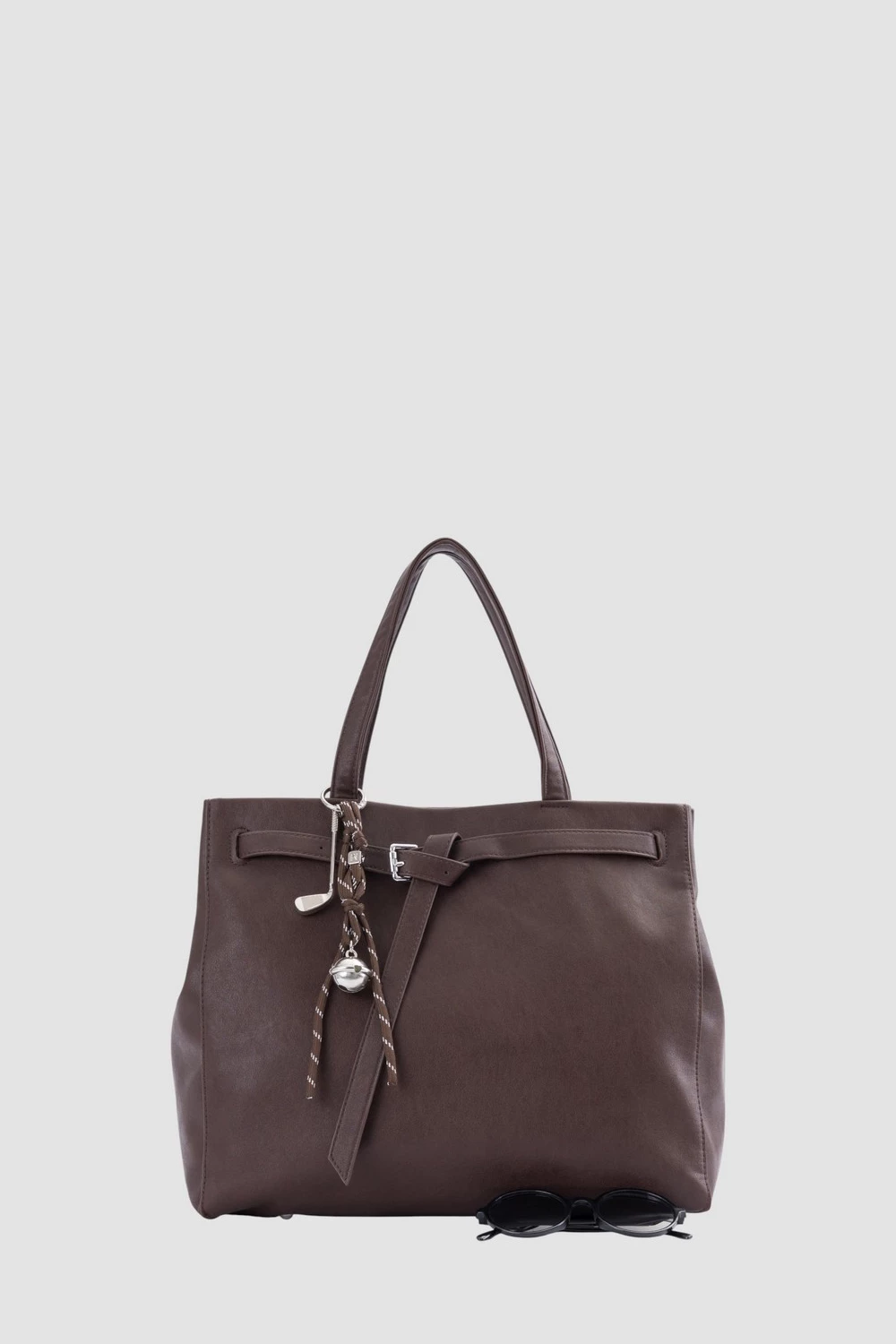 Коричневая сумка-тоут изготовлена из эко-кожи. Основной отсек надежно защищён прочной молнией. Организация внутреннего пространства представлена средним карманом на застёжке-молнии и двумя небольшими отделениями: открытым и закрытым на замок.Для дополнительной безопасности предусмотрен секретный карман на задней стороне изделия. Благодаря регулируемому плечевому ремню, эту модель комфортно носится. Такой функциональный аксессуар дополнит гардероб любителей городского стиля и деловых мероприятий.