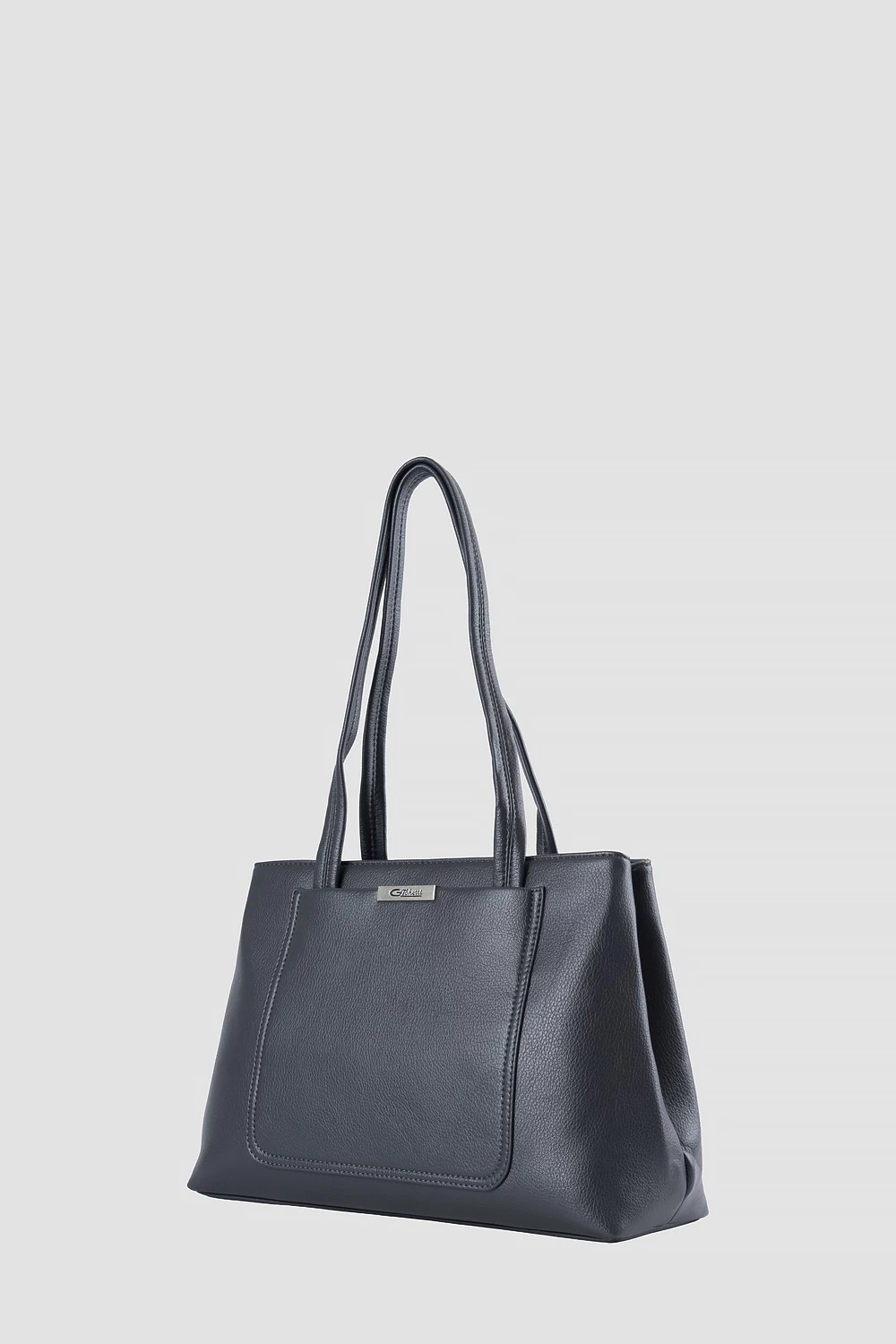 Серая сумка-тоут с просторным интерьером: два отделения, внутренний карман на молнии и один открытый карман. Для мелочи предусмотрен наружный карман на молнии сзади. Стильный аксессуар, подходящий для повседневного использования.● внешний карман на замке для мелочей