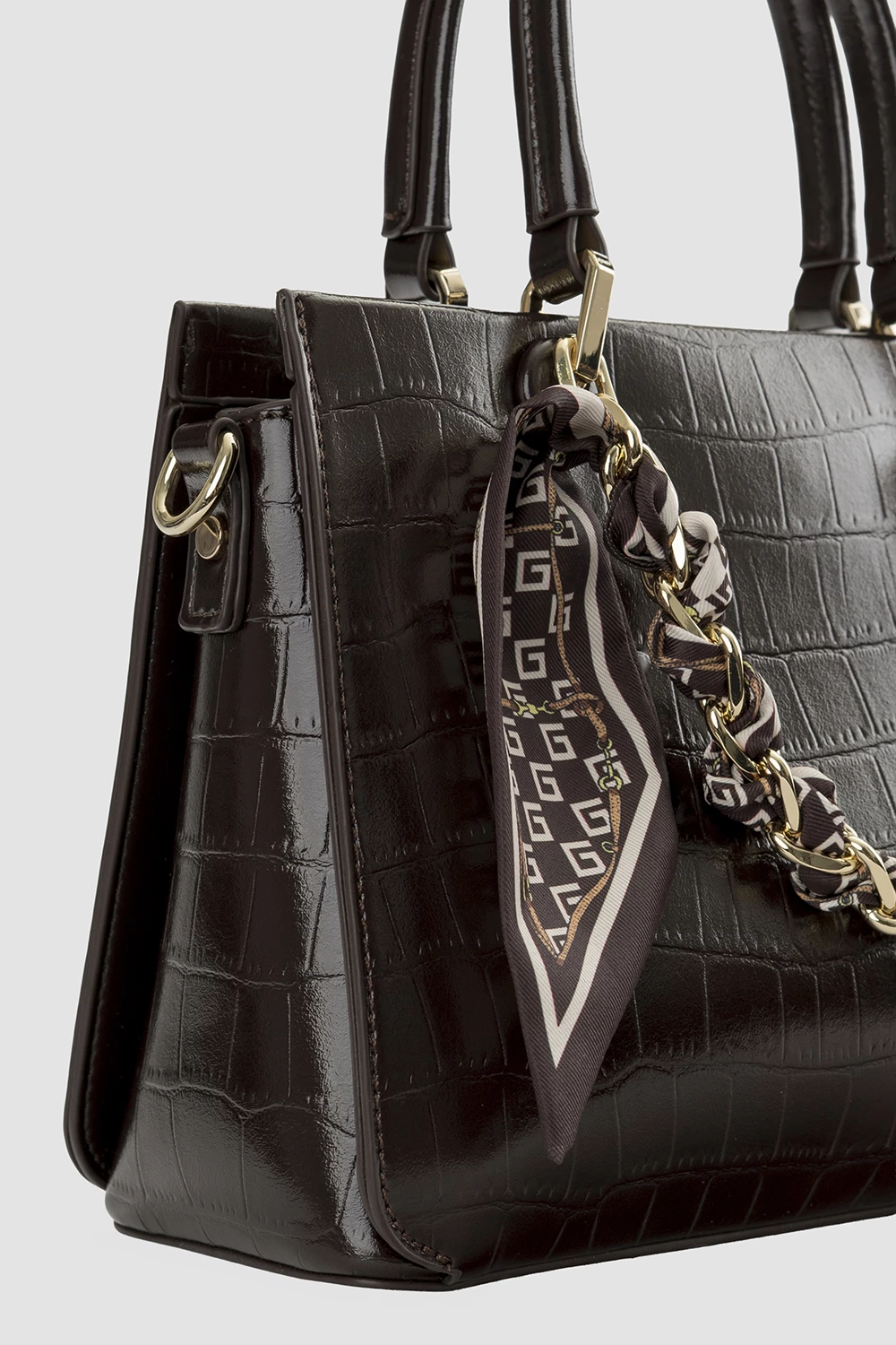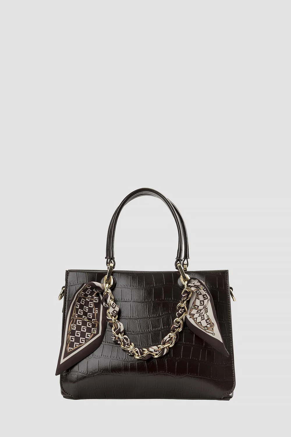 Стильная коричневая сумка-тоут из экокожи с элегантным тиснением. Внутри - карман на молнии для ценных вещей и открытый карман для удобства. В комплекте - декоративная цепочка и регулируемый ремень, чтобы носить как сумку или кросс-боди. Универсальный аксессуар для любого образа! ✨● модель для повседневной носки