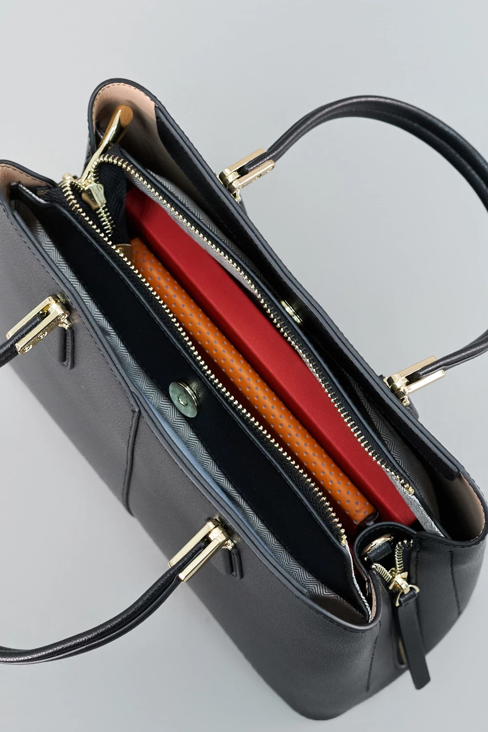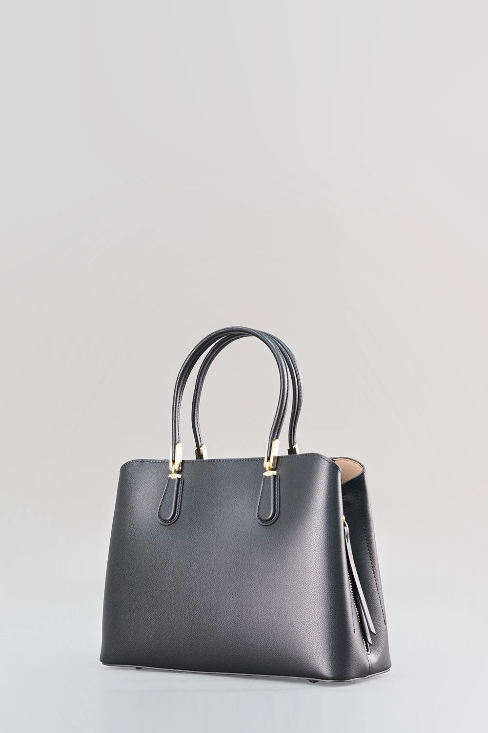 Представленная модель сумки уникальна, поскольку отлично сочетает в себе простоту и стиль без излишеств.Жесткий корпус прекрасно выдерживает форму, а ручки удобно размещаются в руке. Несомненным достоинством является один основной отдел, и два дополнительных — для книг, записных книжек, небольших папок, которые должны быть всегда под рукой.
