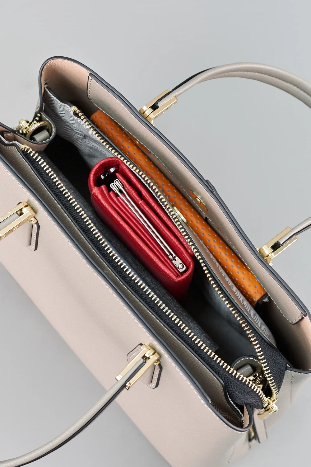 Представленная модель сумки уникальна, поскольку отлично сочетает в себе простоту и стиль без излишеств.Жесткий корпус прекрасно выдерживает форму, а ручки удобно размещаются в руке. Несомненным достоинством является один основной отдел, и два дополнительных — для книг, записных книжек, небольших папок, которые должны быть всегда под рукой.