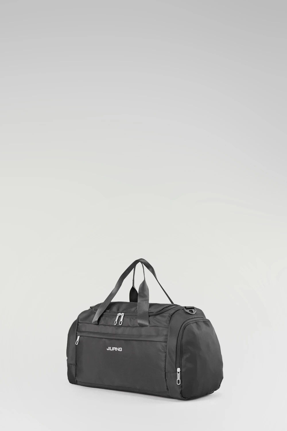 Черная дорожная сумка с одним отделением и внутренним карманом на молнии. Снаружи расположены два функциональных застегивающихся кармана. Отдельное пространство предусмотрено для обуви. В комплекте идет текстильный ремень. Отличный выбор для поездок и путешествий.Размер