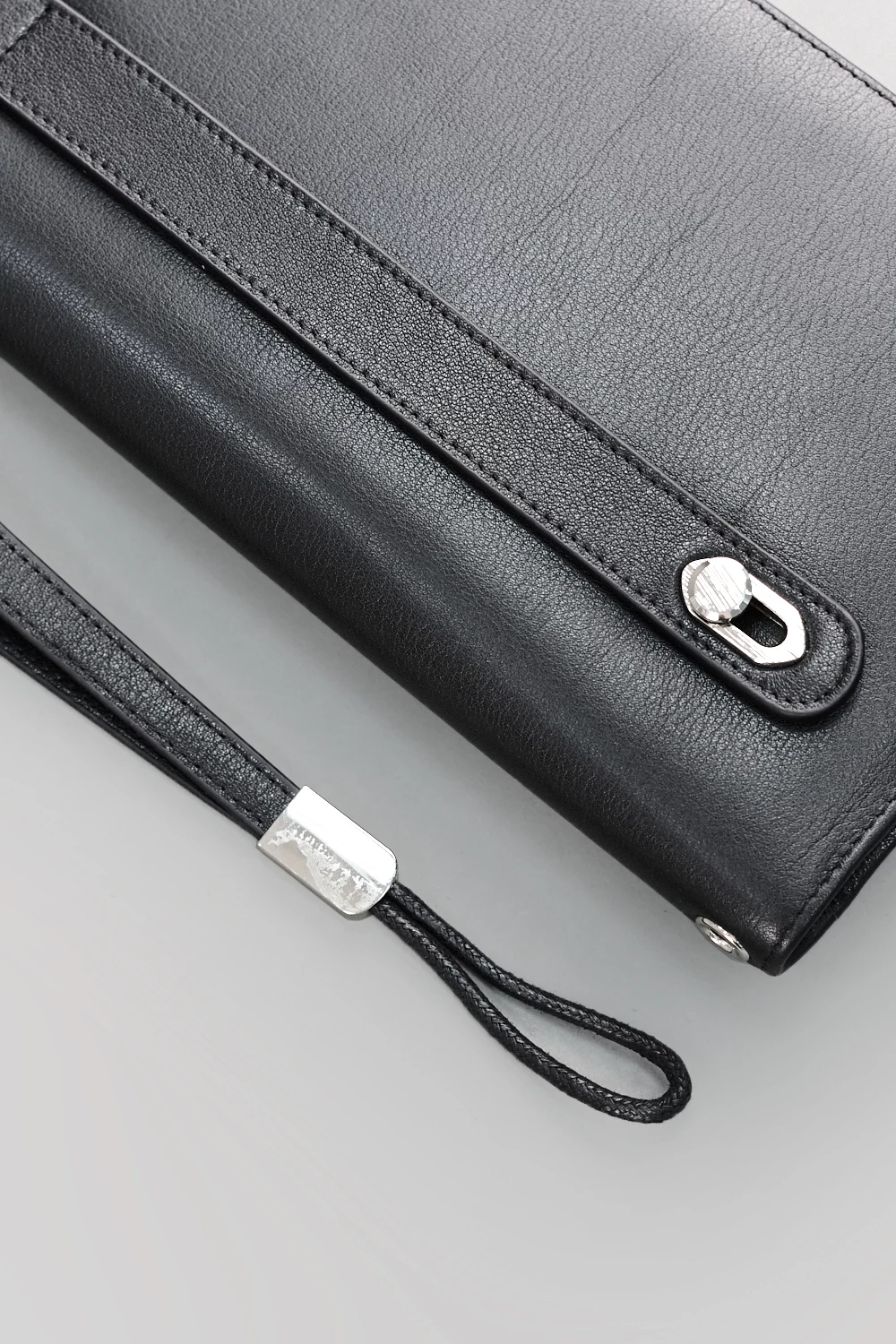 Мужской клатч черного цвета из натуральной кожи с двумя отделами на молниях. Один отдел оснащен отделением для карт, второй дополнен дополнительным карманом на молнии. Аксессуар сочетает стиль, качество и функциональность, подчеркивая индивидуальность владельца.
