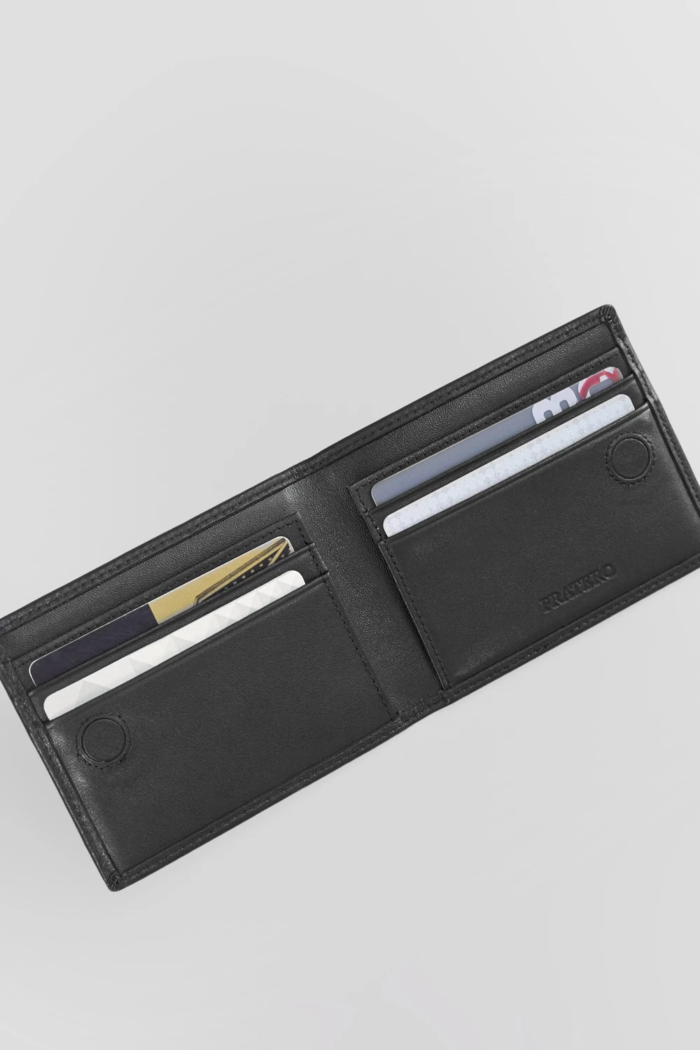Черный компактный кошелек, в котором находятся четыре слота для карт и вместительное отделение для купюр. Благодаря магниту финансы будут под защитой и днем и ночью, а благодаря компактному размеру поместится даже в карман.