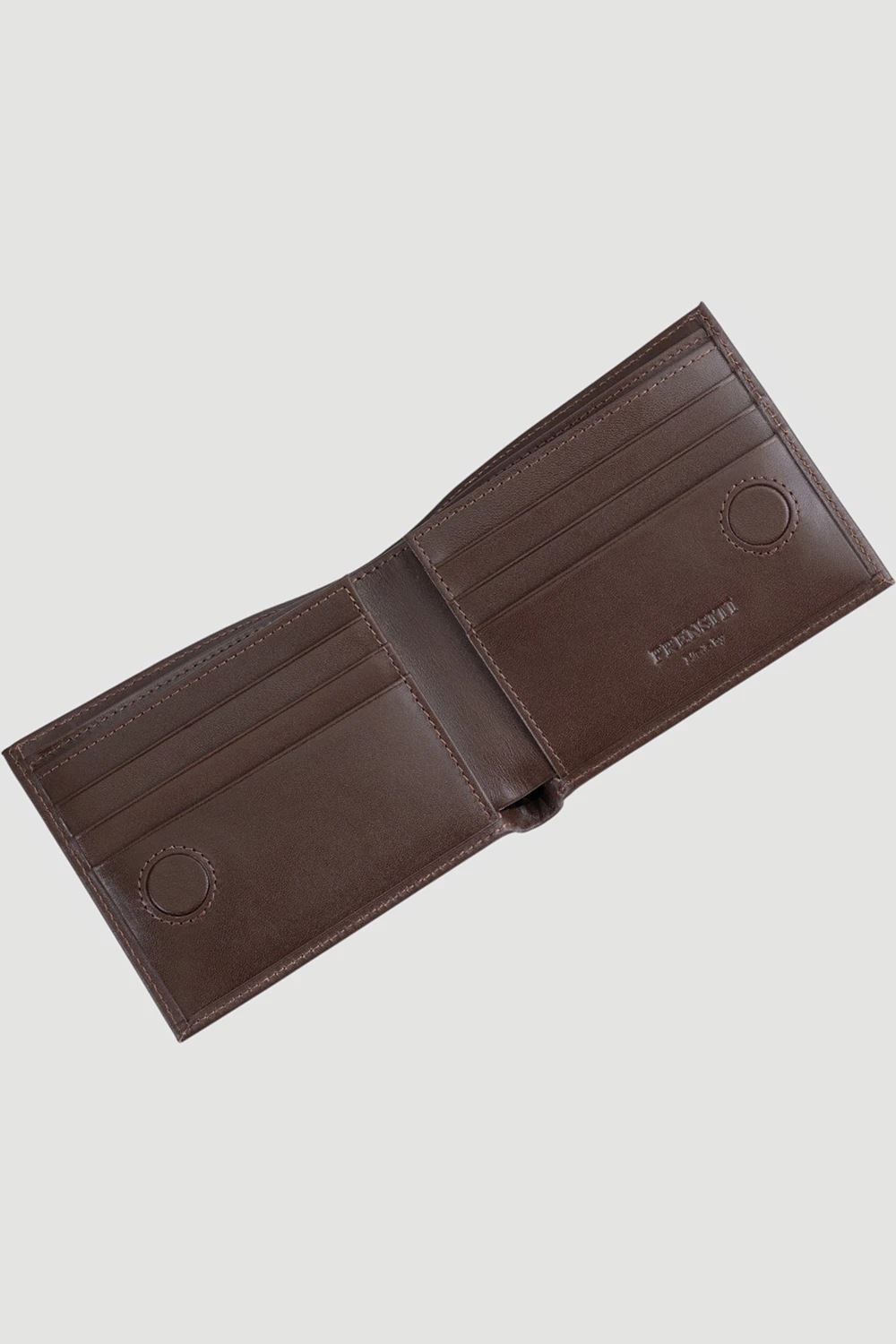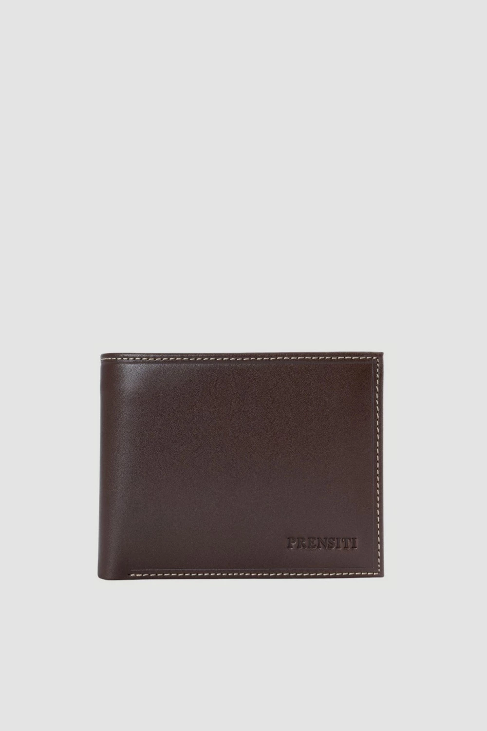 Коричневый мужской кошелек с двумя просторными отделениями для купюр, скрытого потайного кармана на молнии и несколькими отсеками для банковских карт. Элегантный дизайн и функциональность делают этот аксессуар выбором современного мужчины.