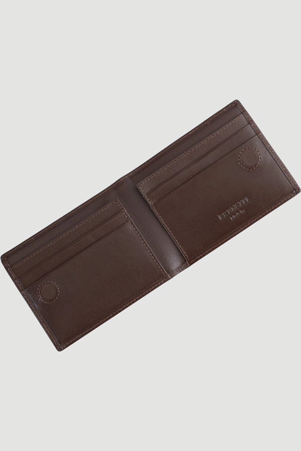 Компактный мужской кошелек коричневого цвета с отделением для купюр и слотом для карт. Удобен для ежедневного ношения, изготовлен из натуральной кожи.