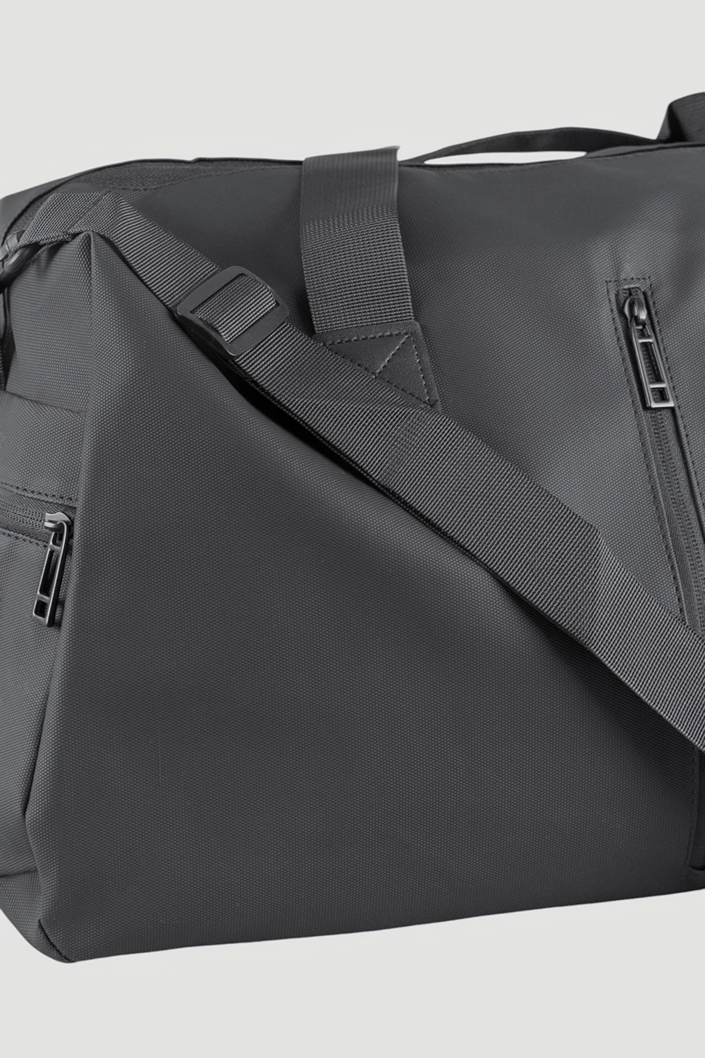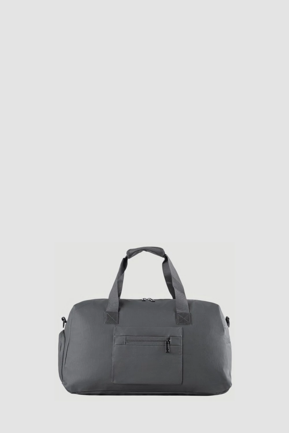 Черная дорожная сумка с единым пространством внутри и внутренним карманом на молнии. Внешняя поверхность оснащена двумя карманами на молнии и одним открытым. В комплект включен текстильный ремень. Выбор для комфорта в дороге.Размер