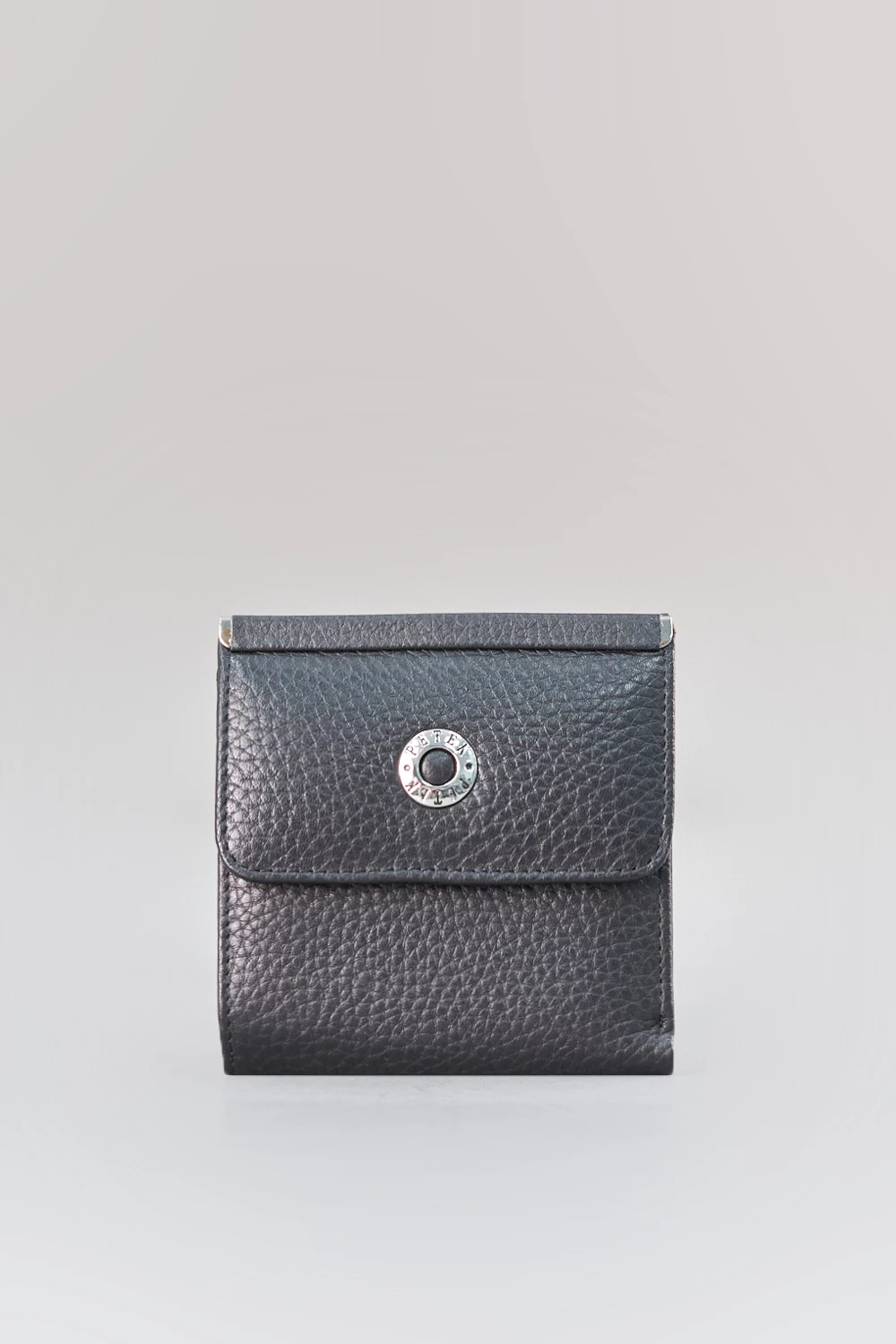 Этот компактный кожаный кошелек вмещает купюры. Материал изготовления - натуральная кожа. Внутреннее пространство включает специальные слоты для пластиковых карт, два кармана для купюр и наружную монетницу, закрывающуюся на кнопку.