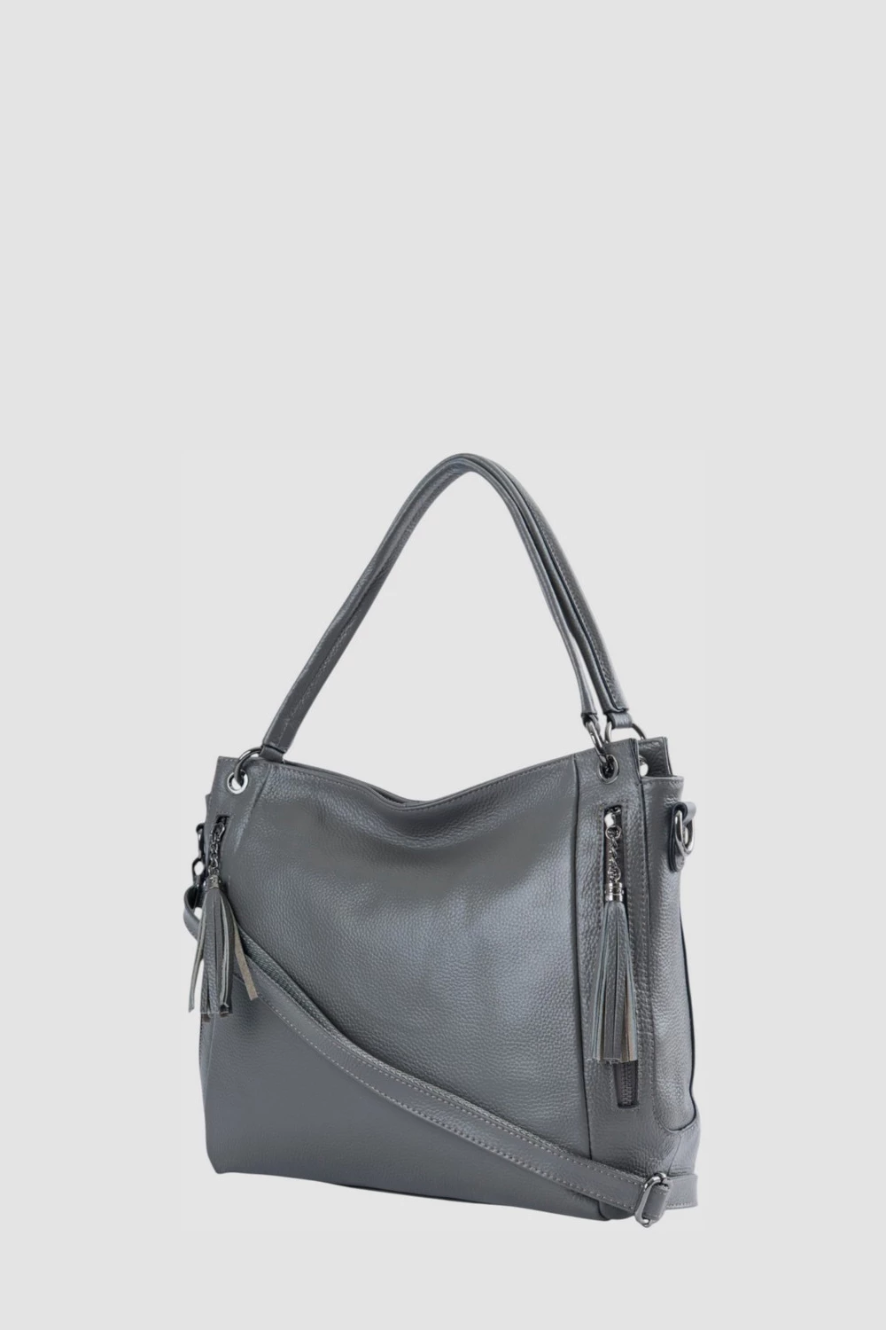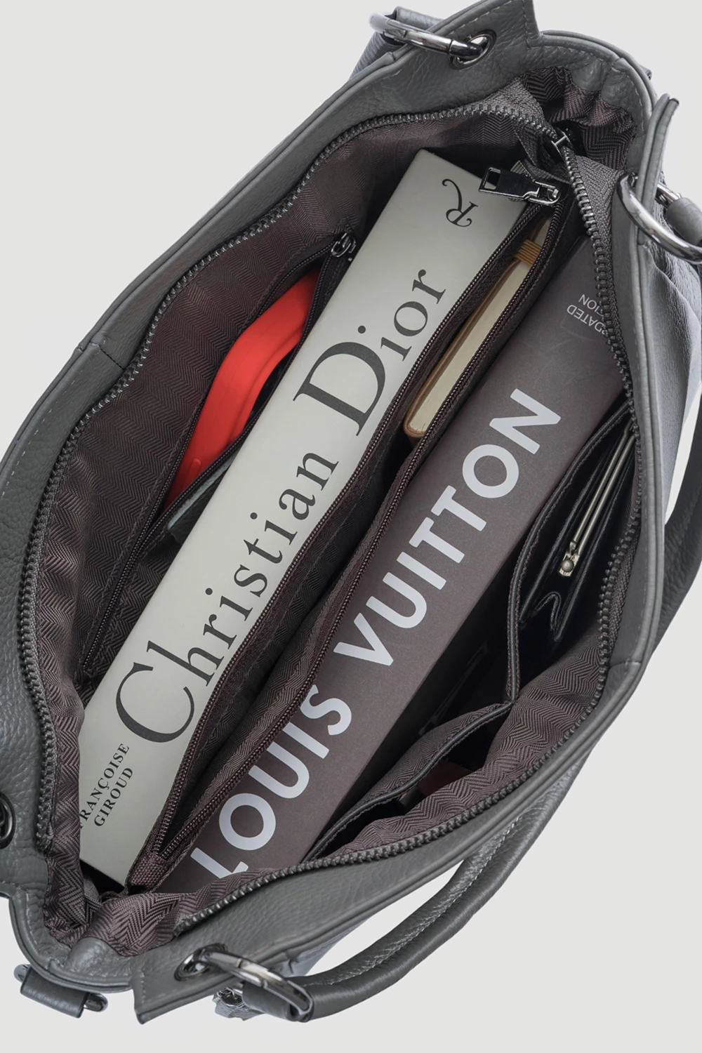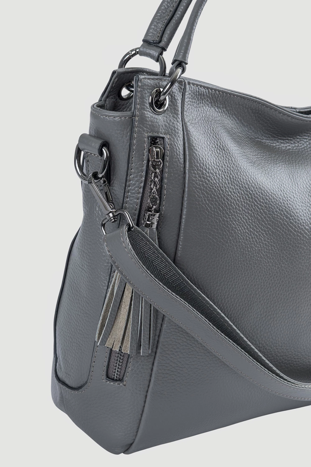 Серая сумка-мешок отличается вместительным интерьером, разделённым на две части центральным карманом на молнии. Помимо этого, внутри расположены два открытых отсека и ещё один защищённый карман на молнии.Внешняя сторона сумки оборудована боковыми и спинными карманами с замком-молнией. В комплекте идёт длинный ремень. Выбор для поездок и ежедневного использования.