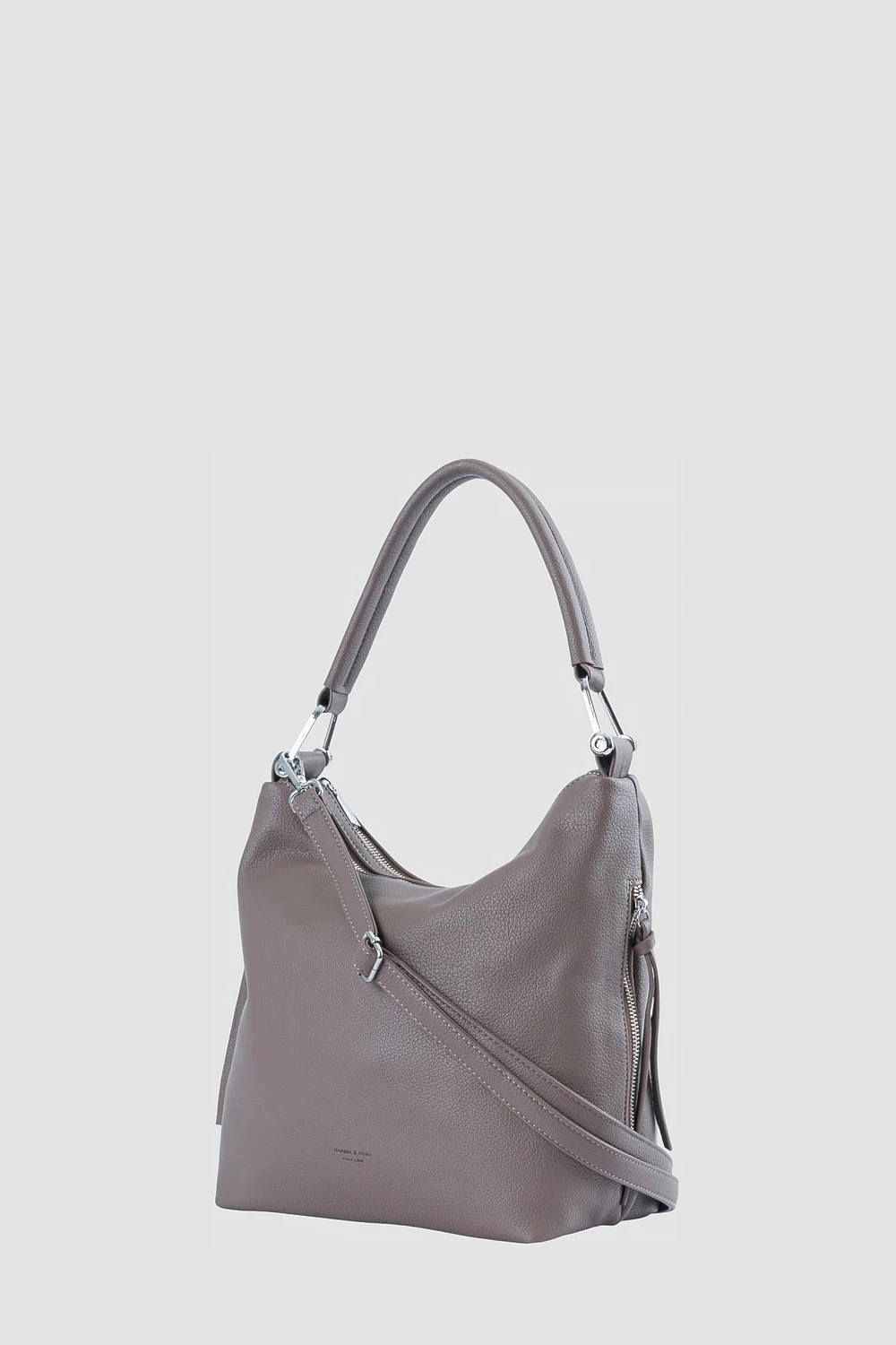 Коричневая сумка мешок, отличающаяся простотой дизайна и утонченностью форм. Оснащена двумя секциями на молнии и двумя внешними боковыми карманами. Внутреннее устройство включает один открытый карман и один закрытый на молнии.Комплектация состоит из одного регулируемого длинного ремешка. Задняя сторона изделия оснащена внешним карманом на молнии.