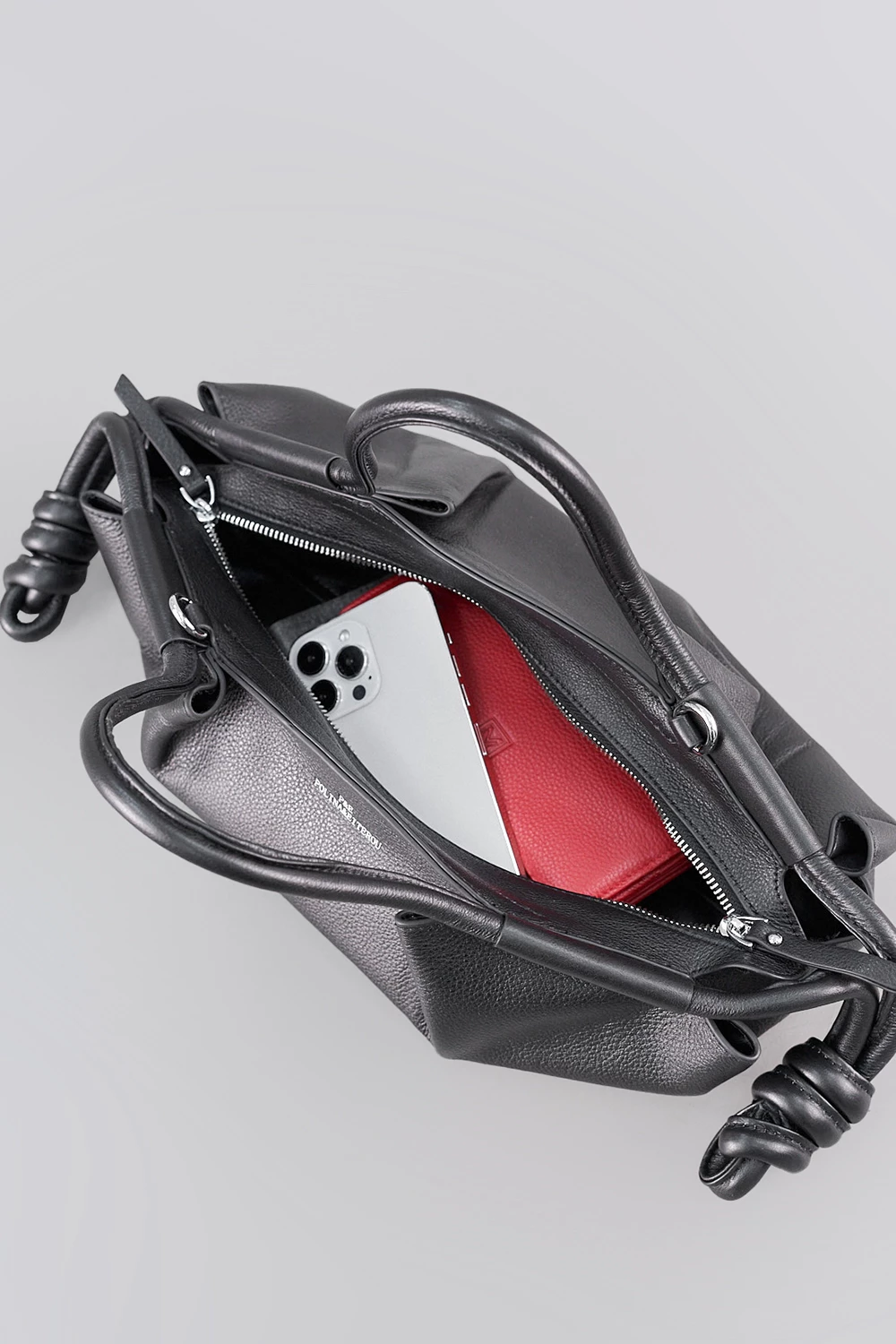 Строгий и практичный мешок из натуральной кожи уже покорил миллионы сердец своим уникальным дизайном!В просторный внутренний отдел можно вместить документы небольшого формата, косметичку и прочие необходимые вещи, а длинный ремень позволяет носить сумку не только в руках, но и на плече.