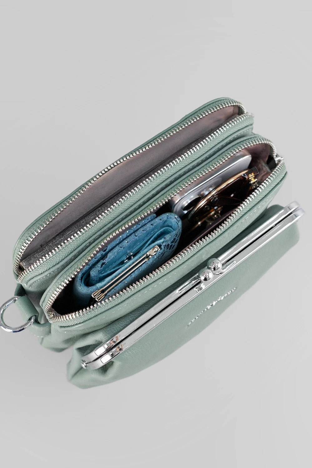 Зелёная сумка-мессенджер с продуманным внутренним пространством: два вместительных отделения на молнии, один открытый карман и внутренний карман на молнии.Снаружи задний карман на молнии и фронтальным отделением на элегантном фермуаре. Сумка комплектуется съёмными длинными и короткими регулируемыми ремешками, обеспечивая комфортное использование.