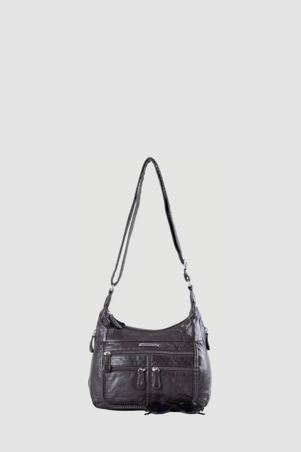 Коричневая сумка-мессенджер с двумя отсеками на молниях дополнена внутренним открытым отделением и дополнительным внутренним карманом также на молнии.Внешняя сторона изделия оборудована задним карманом на молнию и тремя передними карманами различной конфигурации, а боковые стороны украшены карманами на замках. Модель предназначена для повседневной носки, городских прогулок, посещения занятий или офиса, а также путешествий.