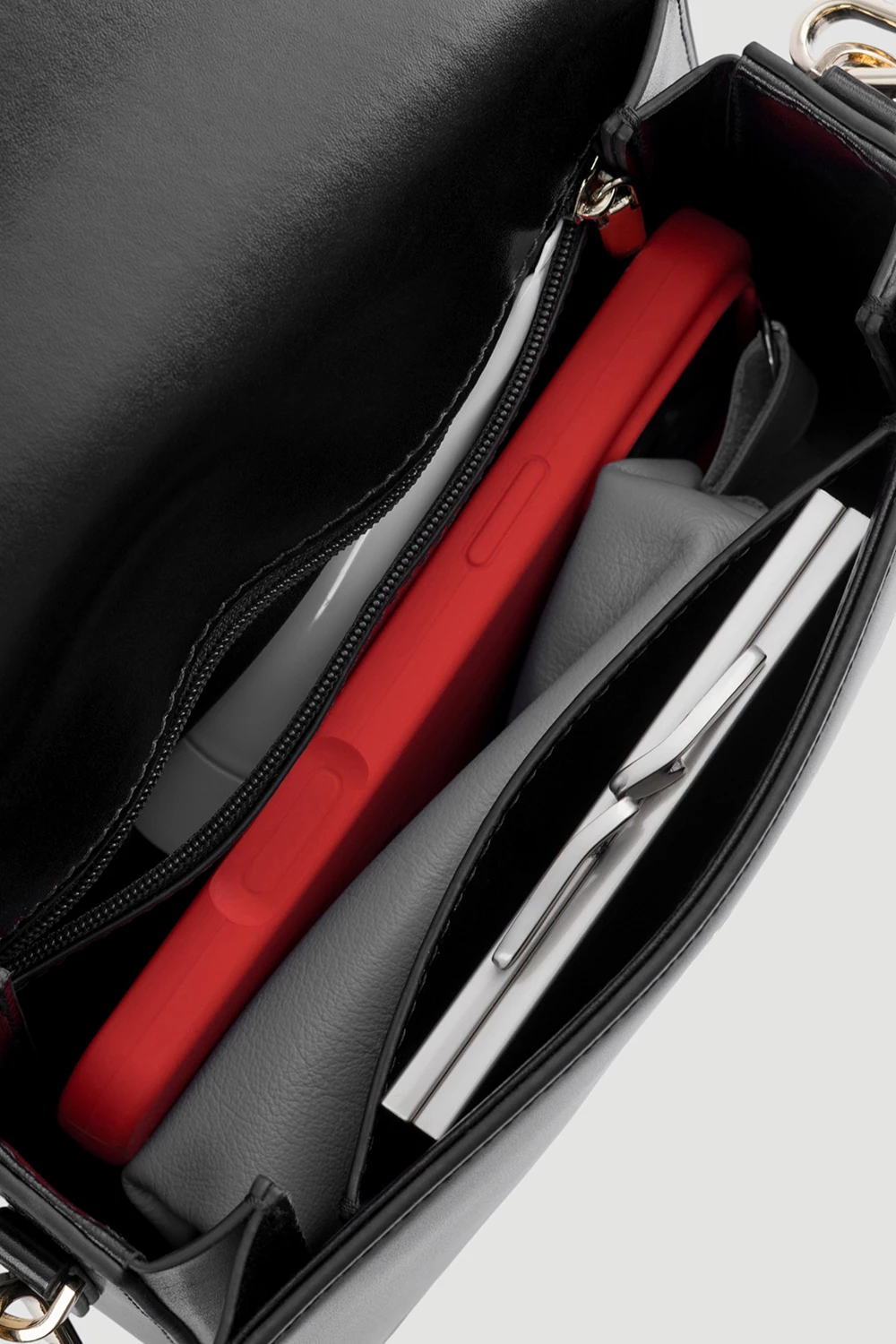 Классическая чёрная сумка-мессенджер с одним большим отделением, оснащённая двумя карманами: один закрыт на молнию, другой открыт. Комплектация включает два ремня - длинный и короткий, позволяя адаптировать сумку под разные стили ношения.● карман на молнии и открытый карман внутри