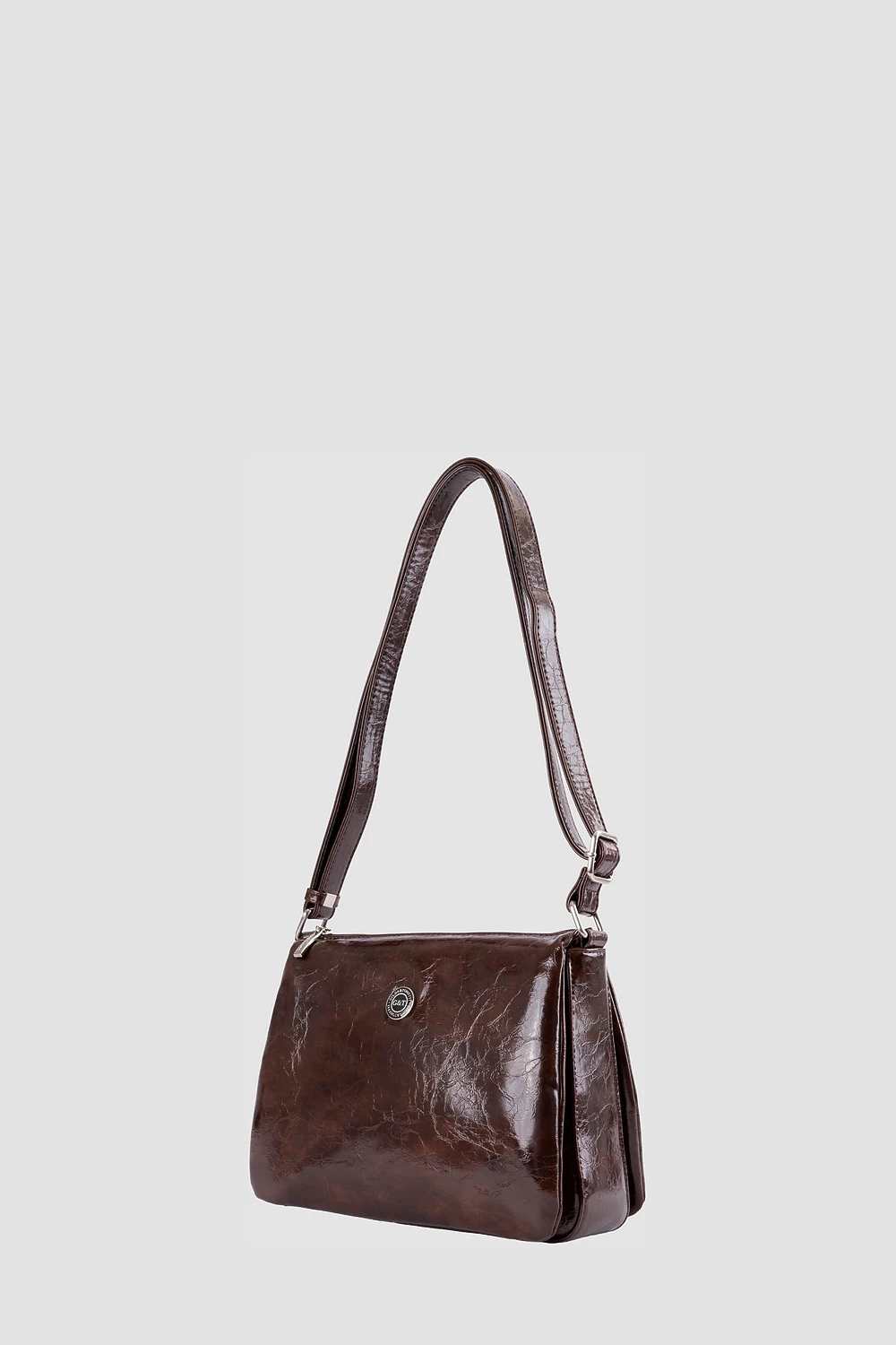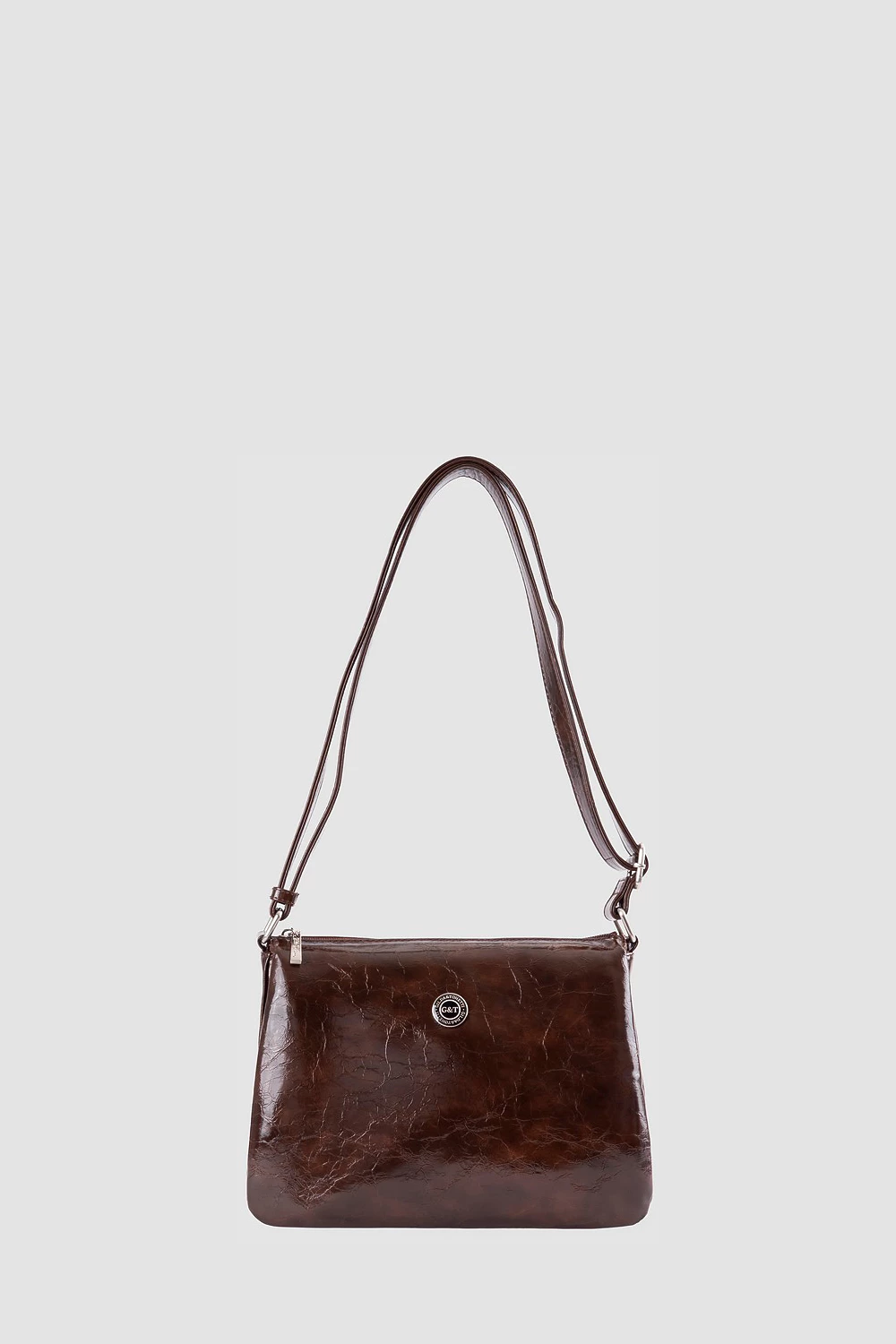 Коричневая сумка-мессенджер из экокожи с масляной обработкой. Три отделения дополняются двумя карманами на молнии и одним открытым внутри, а также задним наружным карманом на молнии.Подходит как для городского ритма, так и для деловой активности, удачно объединяя эстетику и удобство.