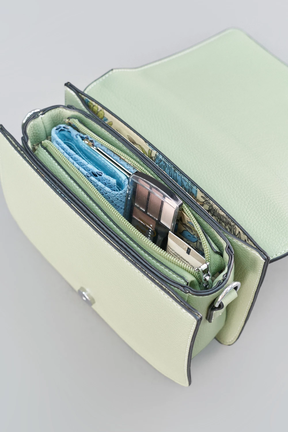 Женская сумка-мессенджер нежного светло-зеленого оттенка из экокожи. Универсальный съемный ремень с регулируемой длиной для ношения через плечо или через корпус. Внутренняя организация летней сумочки с тремя отделениями. Магнитная застежка обеспечивает безопасность.Свежий летний аксессуар для повседневного образа. Нежный светло-зеленый цвет добавит элегантности стилю.